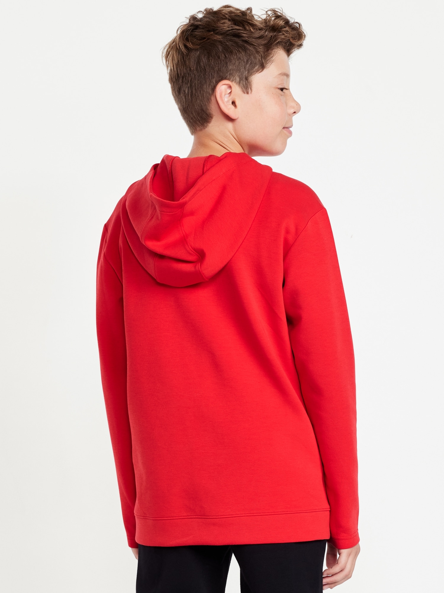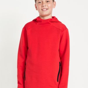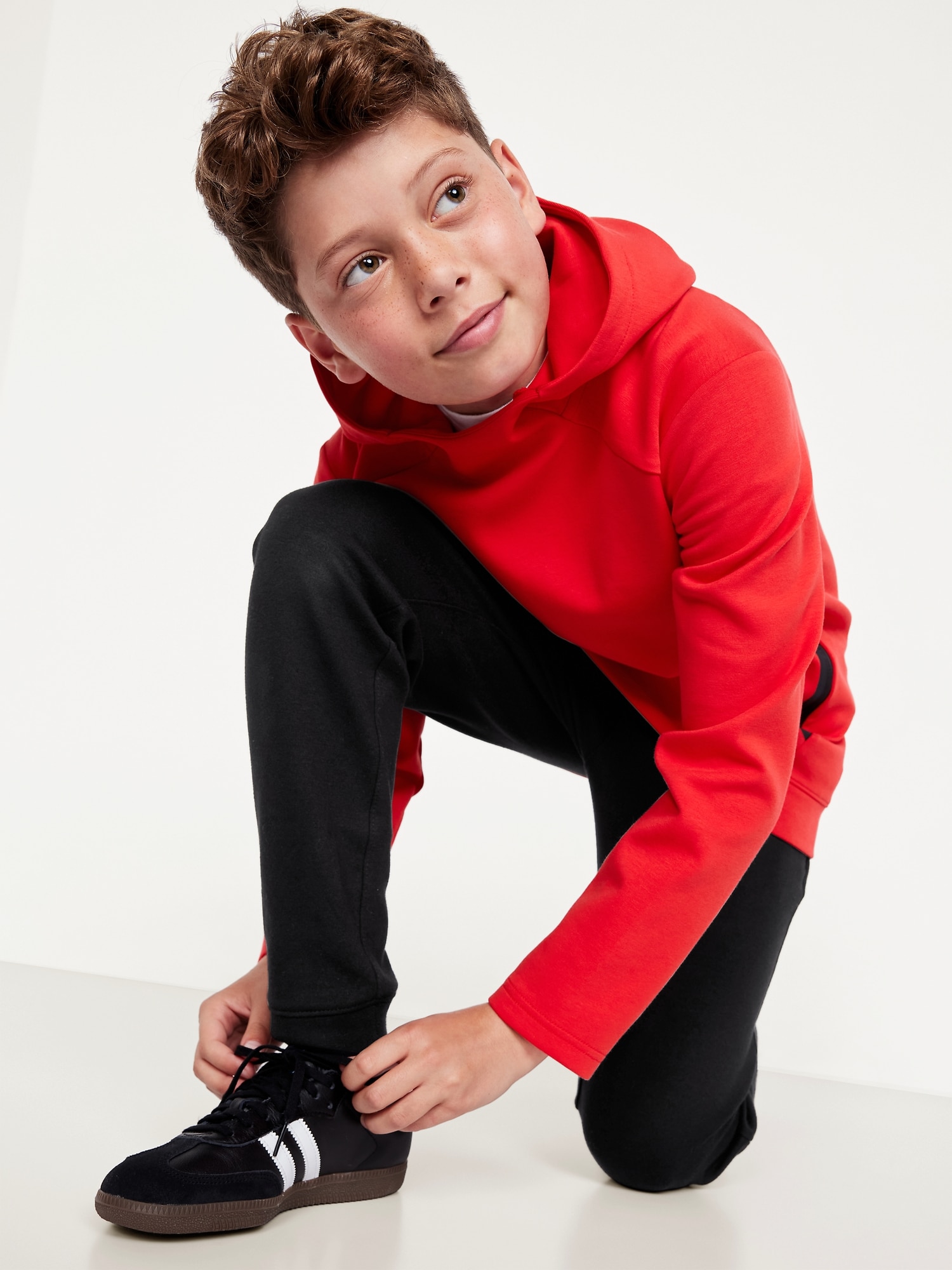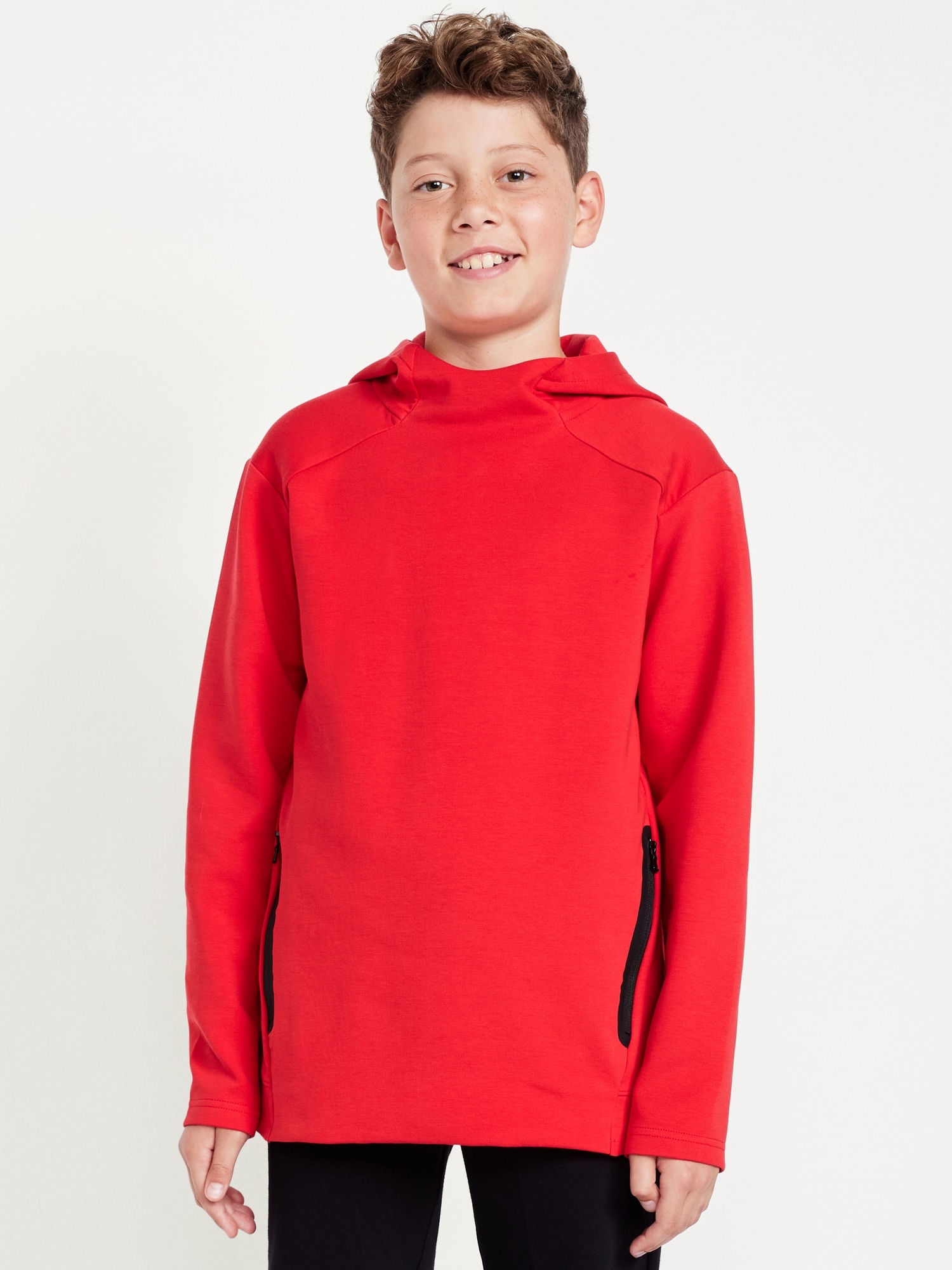 Dynamic Fleece Pullover Hoodie for Boys: Made to keep up with all their shenanigans.built-in hood, long sleeves, side zippered pockets, #505457