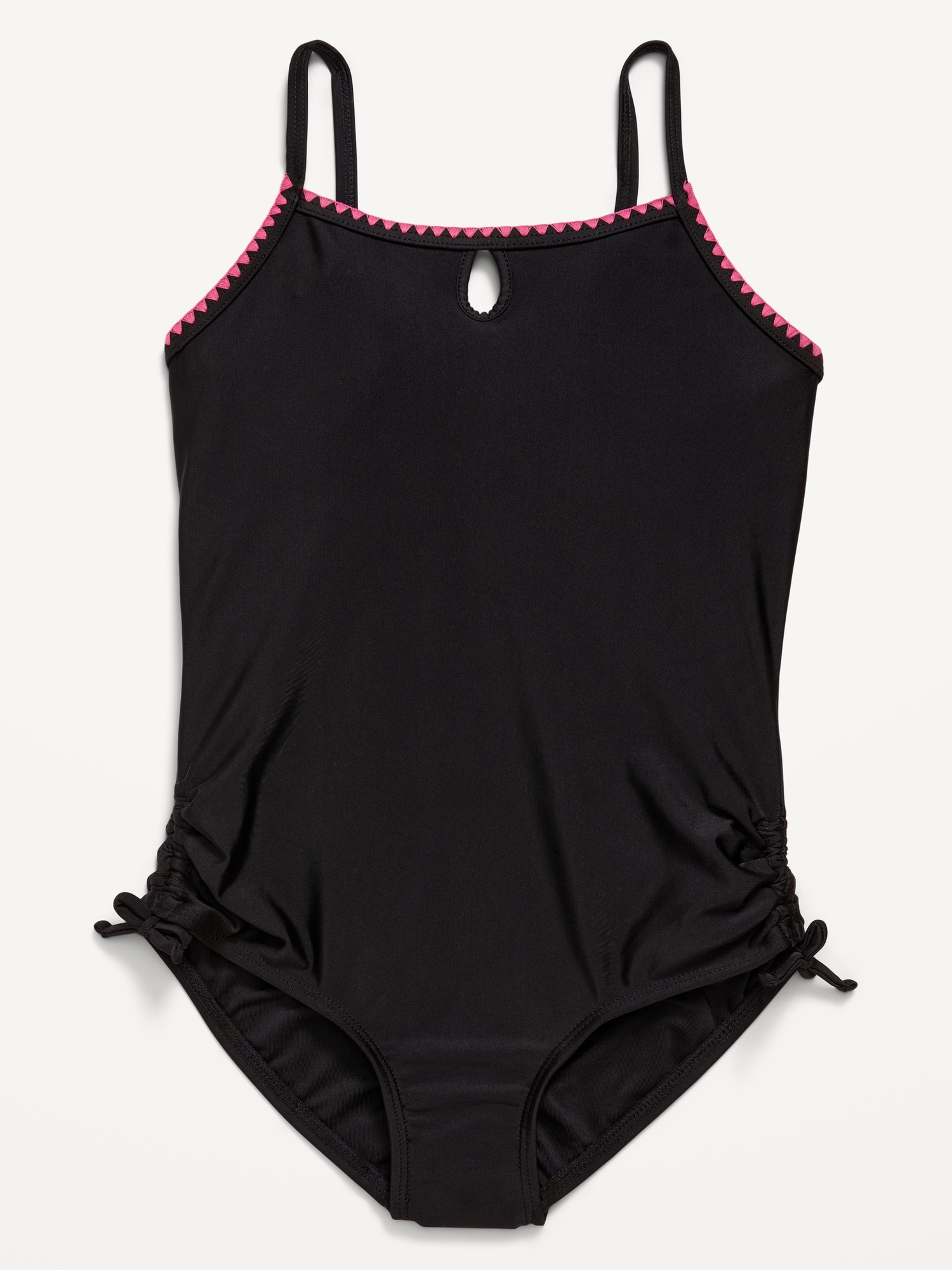 Embroidered Side-Ruched One-Piece Swimsuit for Girls