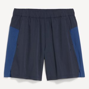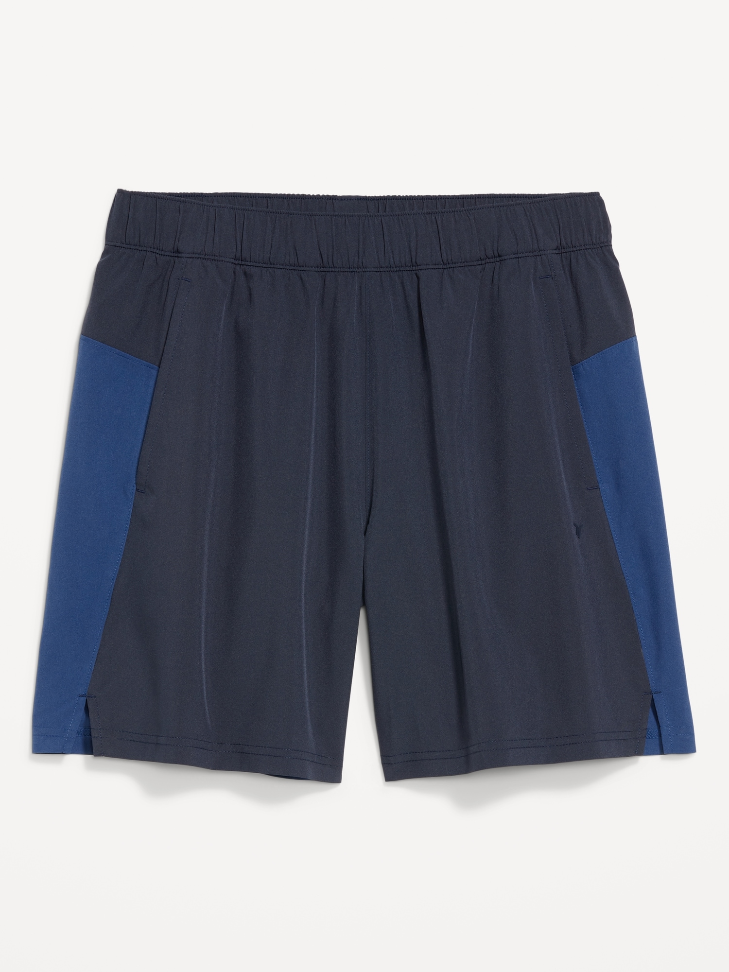 Essential Woven Workout Shorts — 7-inch inseam: High-performance fabric with stretch for 24/7 comfort.elastic-drawstring waist, hip pockets, breathable pocket lining, quick drying, color-blocked, #692860