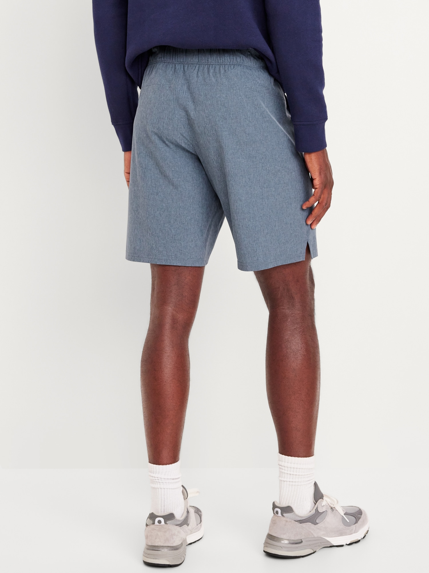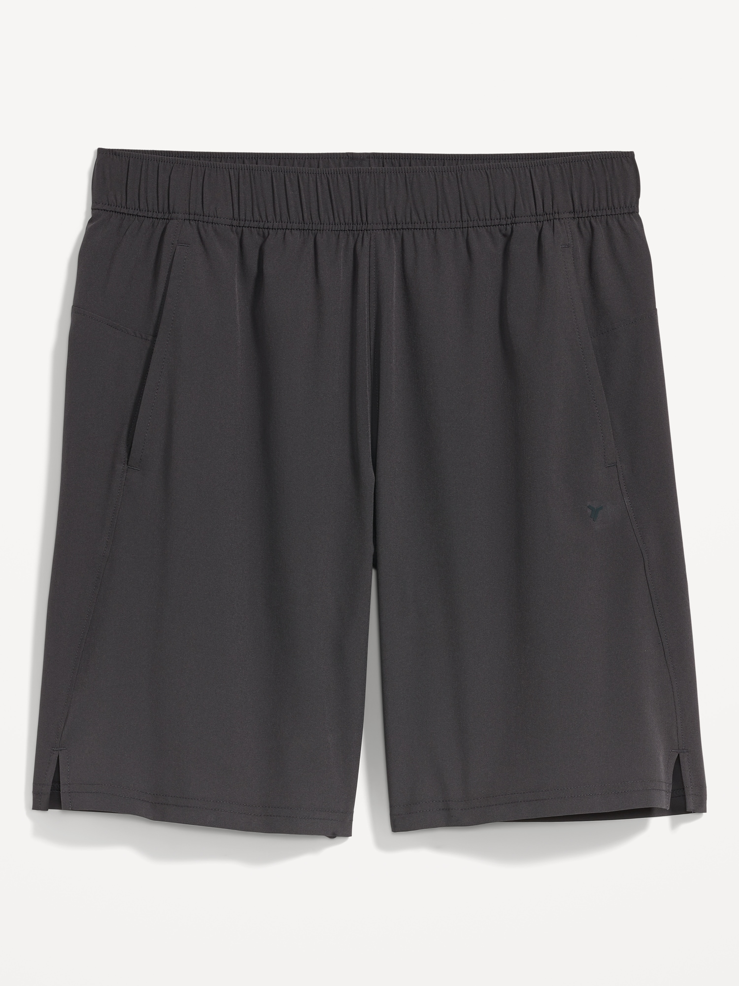 Essential Woven Workout Shorts — 9-inch inseam: High-performance fabric with stretch for 24/7 comfort.elastic-drawstring waist, hip pockets, hidden left stash pocket fits your phone or wallet, welt pocket at back right, breathable, go-h20 water-repellent fabric, #611553