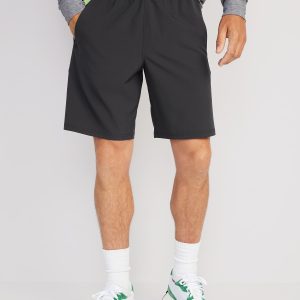 Essential Woven Workout Shorts — 9-inch inseam: High-performance fabric with stretch for 24/7 comfort.elastic-drawstring waist, hip pockets, hidden left stash pocket fits your phone or wallet, welt pocket at back right, breathable, go-h20 water-repellent fabric, #611553