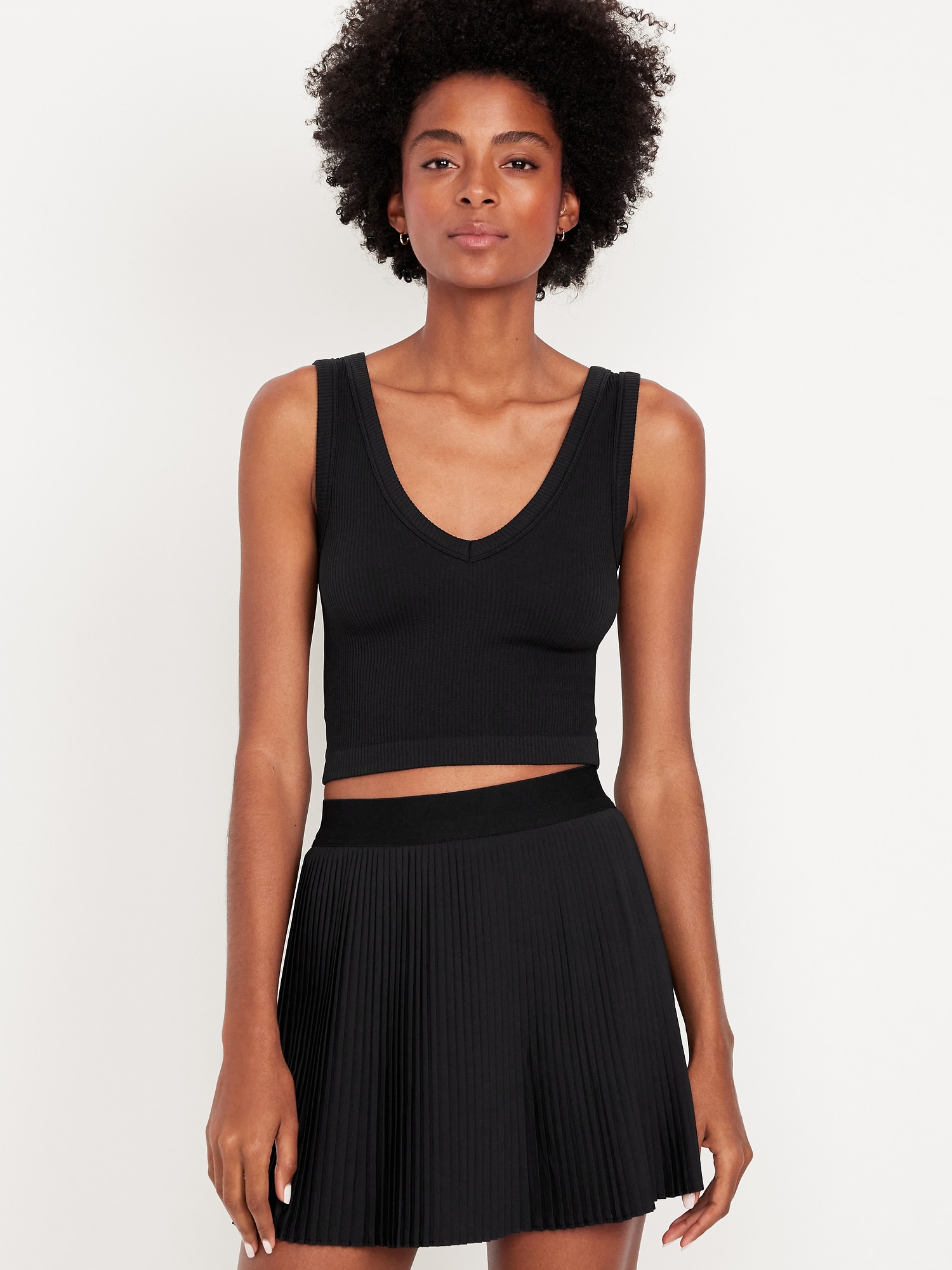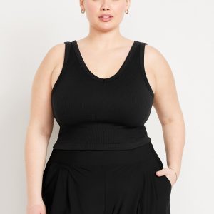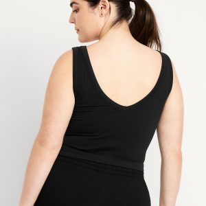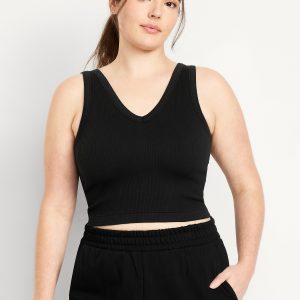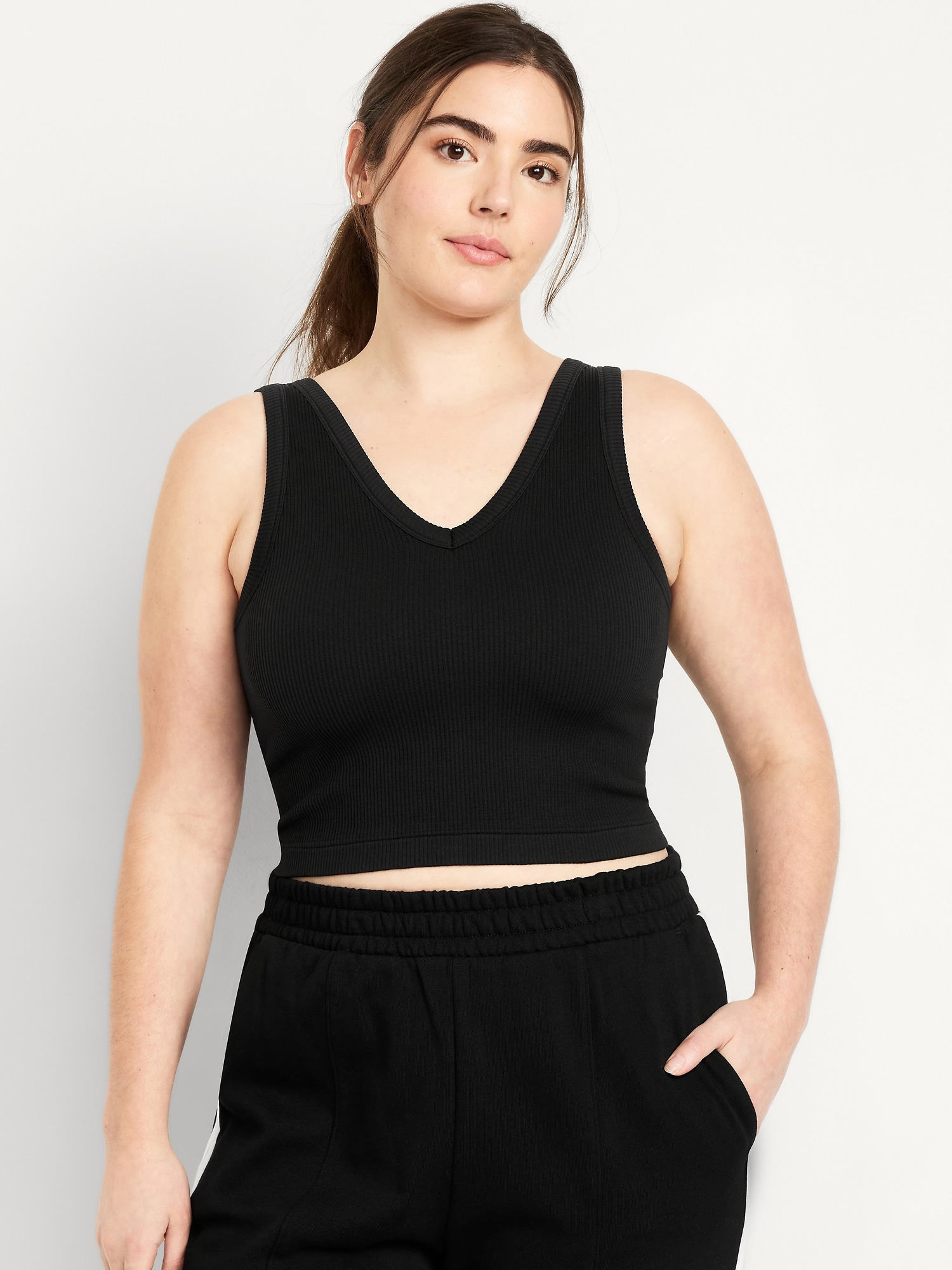 Exhale Seamless V-Neck Rib Tank: Ribbed nylon with incredible stretch and softness.v-neck, wide straps, go-dry wicks moisture, #663772