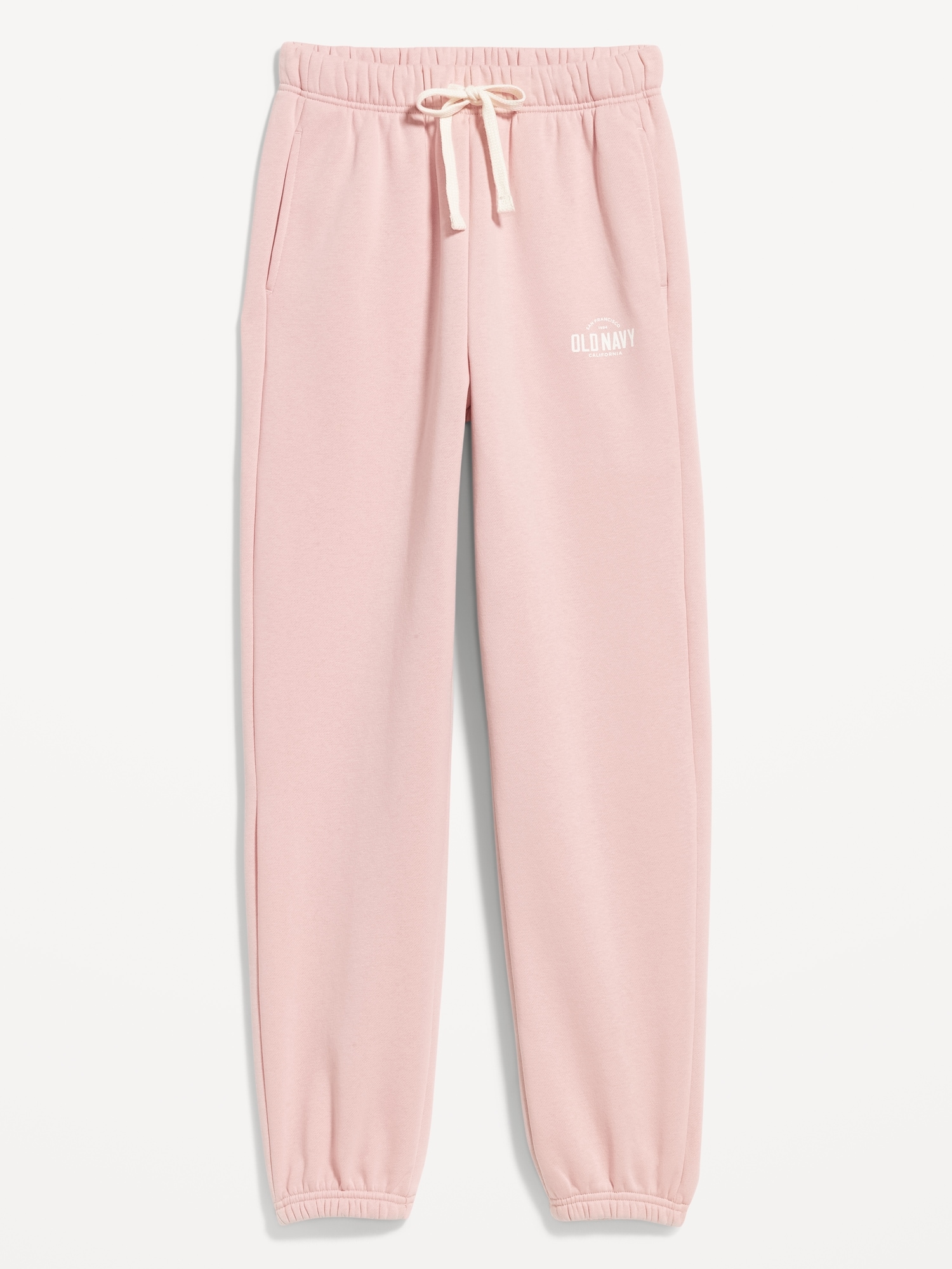 Extra High-Waisted Logo Sweatpants: elastic-drawstring waist, on-seam pockets, logo graphic at left hip, cinched-elastic cuffs, available exclusively online and at outlet stores, #865004