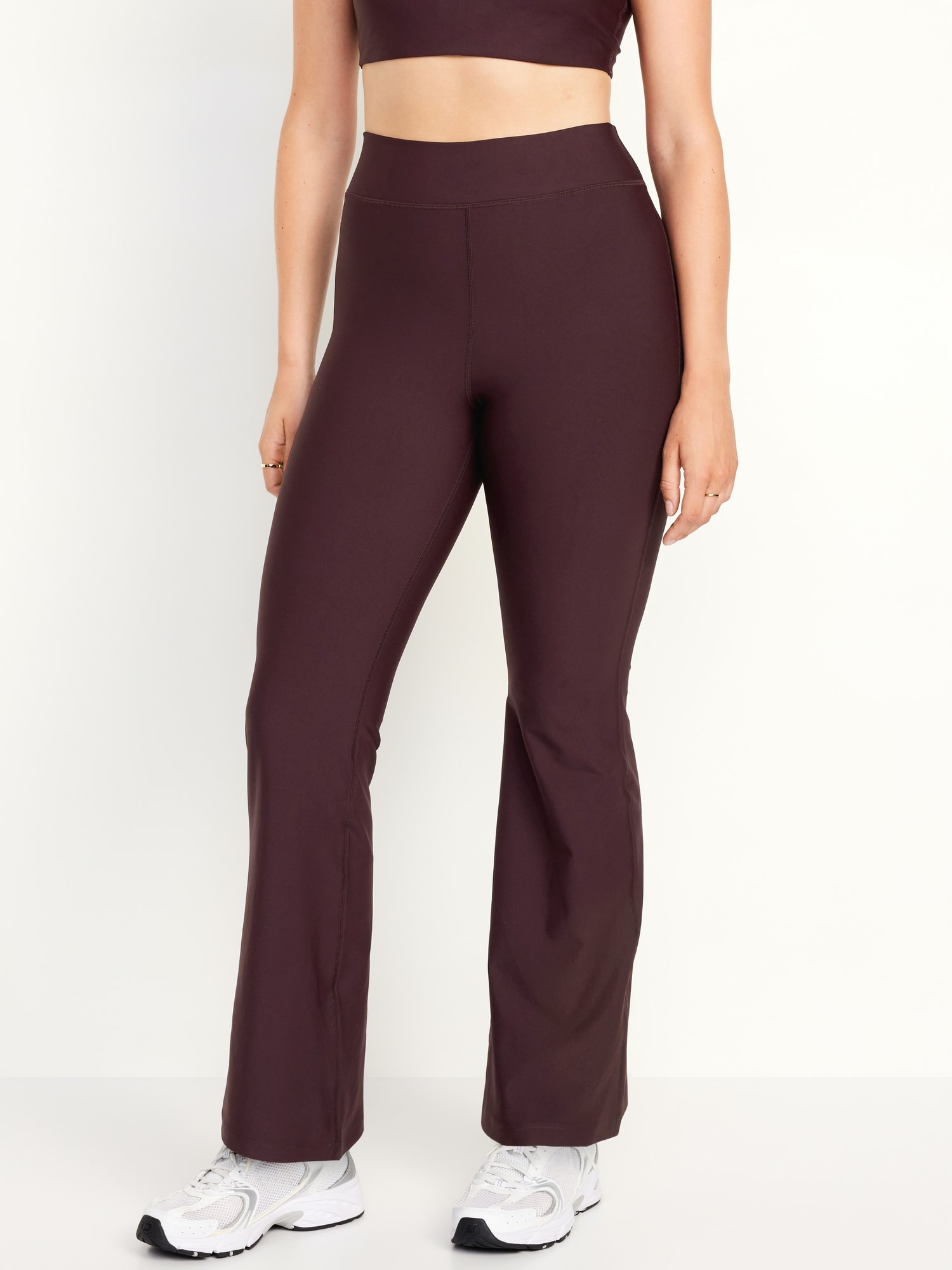 Extra High-Waisted PowerSoft Flare Leggings: Featuring PowerSoft. Light compression meets a peachy-smooth, sweat-wicking fabric.elasticized waistband, go-dry wicks moisture, #544373
