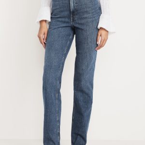 Extra High-Waisted Straight Jeans: Snatched waist with a streamlined leg and a classic silhouette.extra high waist, zip fly, straight leg, #805695