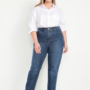 Extra High-Waisted Studded Straight Jeans: Snatched waist with a streamlined leg and a classic silhouette.extra high waist, zip fly, straight leg, #805695
