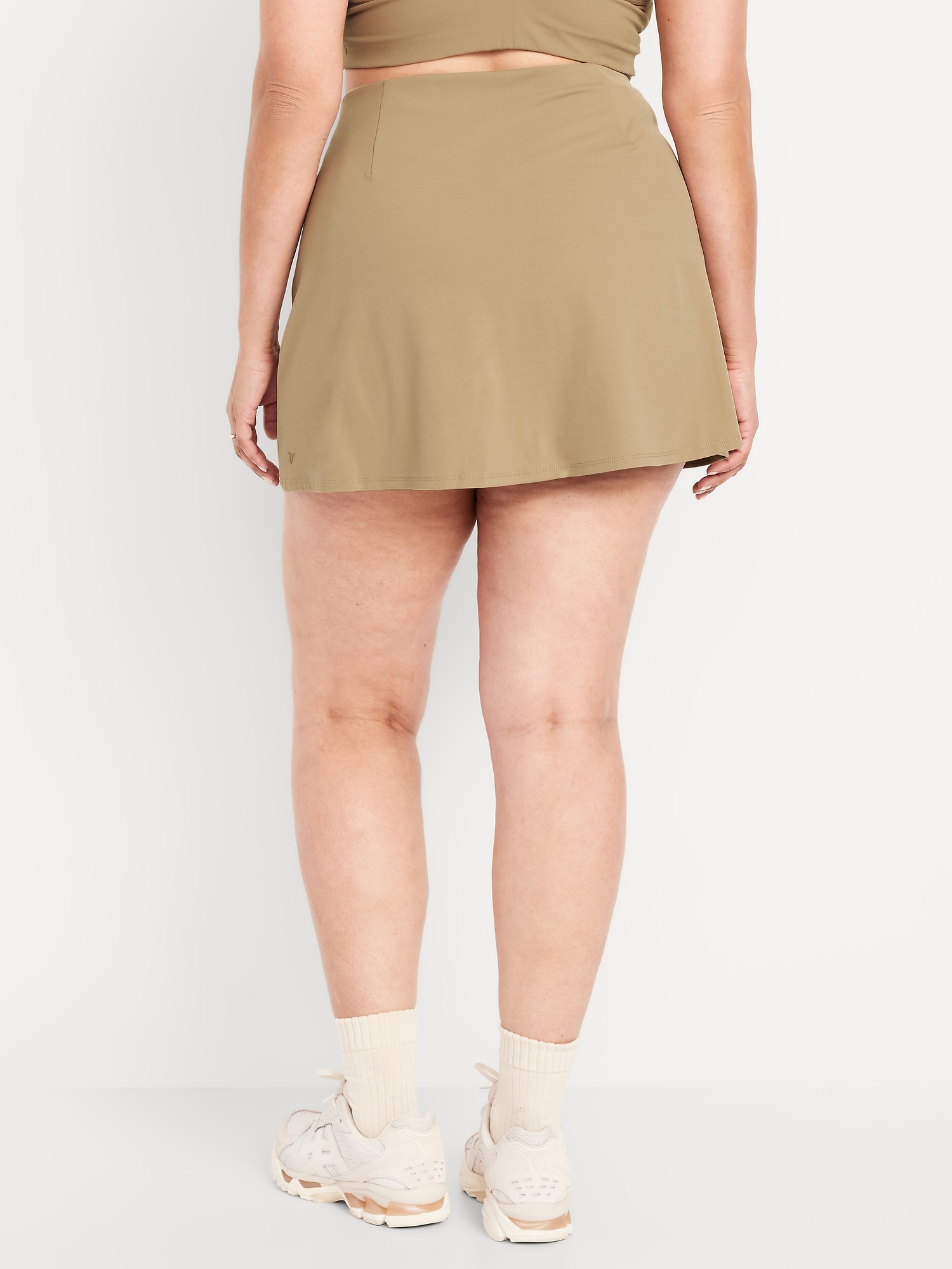 Extra High-Waisted StudioSmooth Skort: Featuring StudioSmooth. Buttery soft and breathable, with a barely-there feel.extra high waist, built-in bike shorts with right pocket for phone, go-dry wicks moisture, breathable, #748686