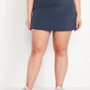 Extra High-Waisted StudioSmooth Skort: Featuring StudioSmooth. Buttery soft and breathable, with a barely-there feel.extra high waist, built-in bike shorts with right pocket for phone, go-dry wicks moisture, breathable, #748686