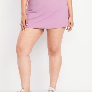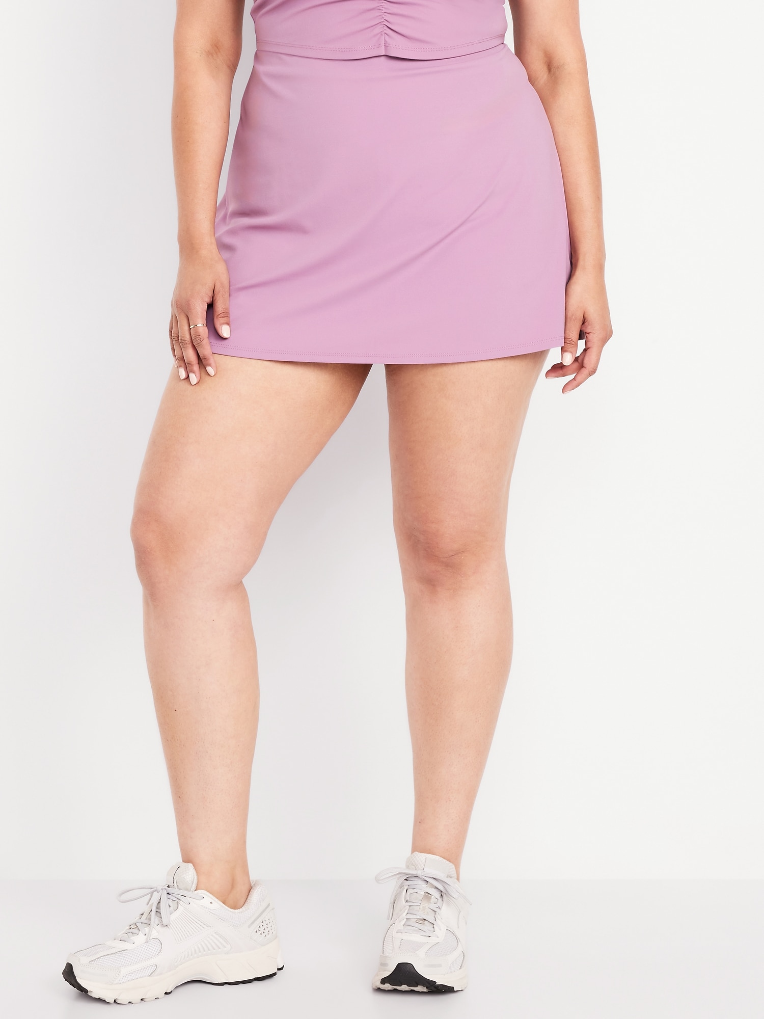 Extra High-Waisted StudioSmooth Skort: Featuring StudioSmooth. Buttery soft and breathable, with a barely-there feel.extra high waist, built-in bike shorts with right pocket for phone, go-dry wicks moisture, breathable, #748686