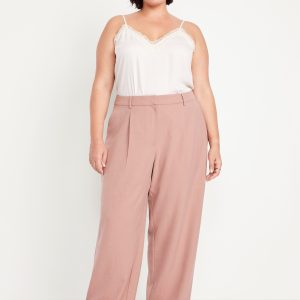 Extra High-Waisted Taylor Wide-Leg Trouser Pants: Tailored pleats. Loose fit. Don’t do 9-5 (or 5-9) without them.adjustable waistband, belt loops, hook-and-bar closure, zip fly, hip pockets, functional back welt pocket, wide leg, #791424