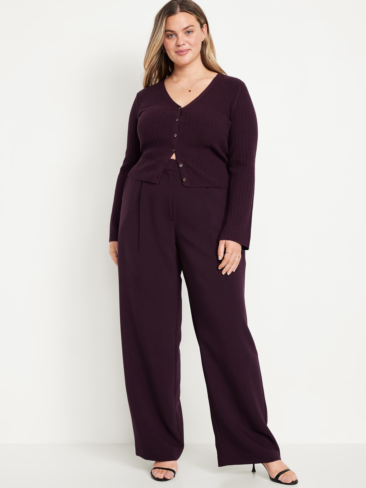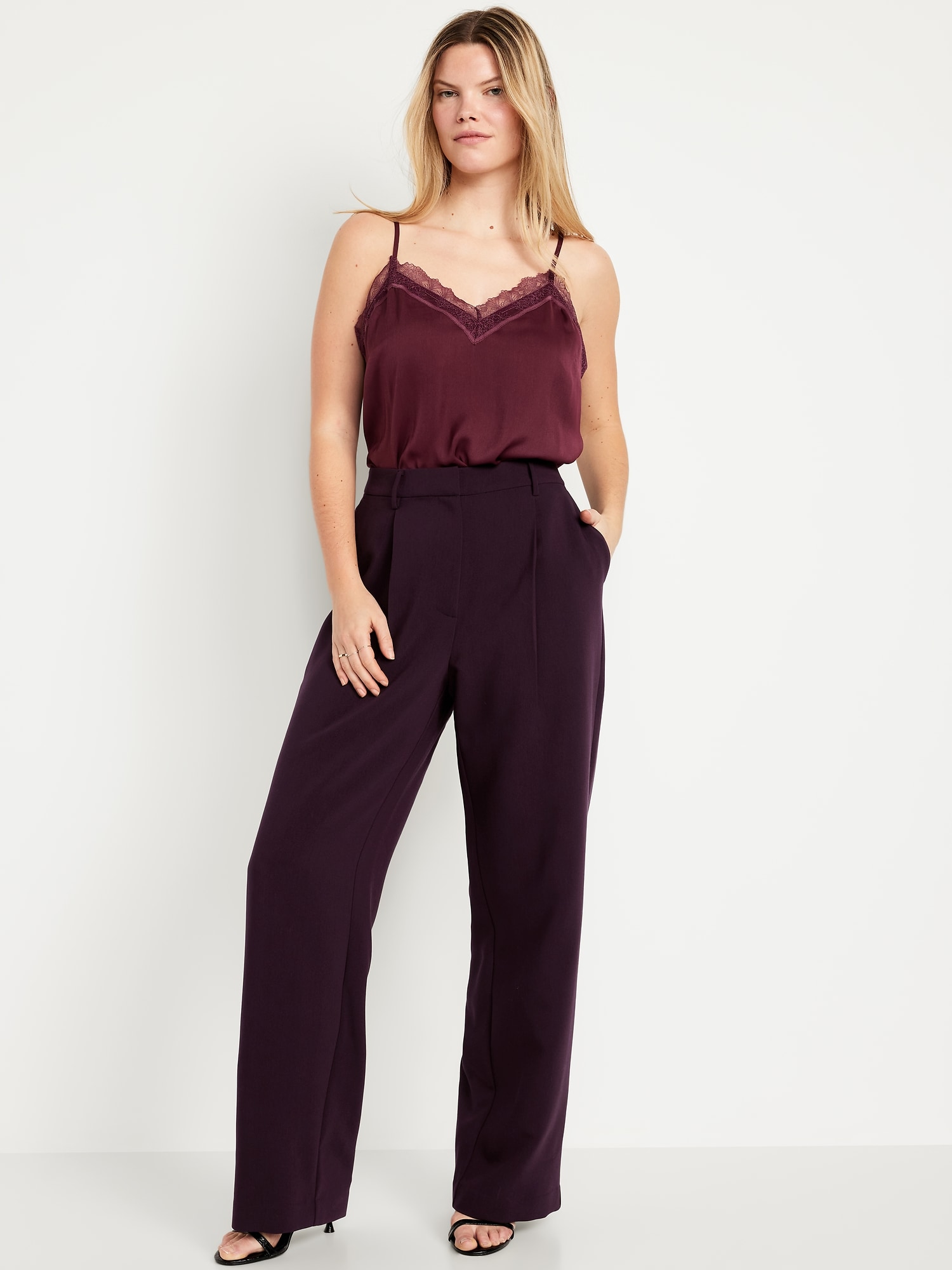 Extra High-Waisted Taylor Wide-Leg Trouser Pants: Tailored pleats. Loose fit. Don’t do 9-5 (or 5-9) without them.adjustable waistband, belt loops, hook-and-bar closure, zip fly, hip pockets, functional back welt pocket, wide leg, #791424