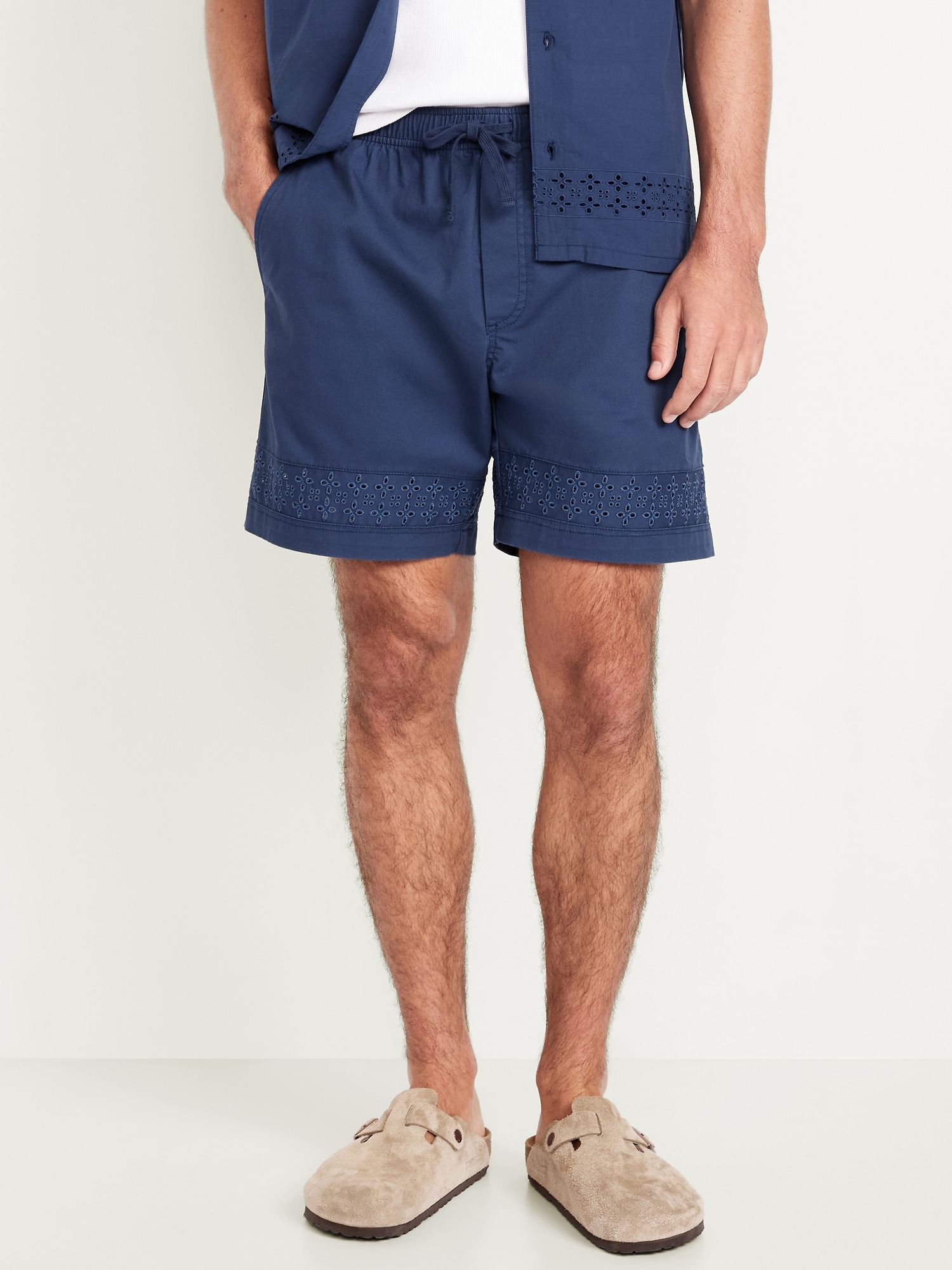 Eyelet-Hem Twill Shorts — 7-inch inseam