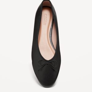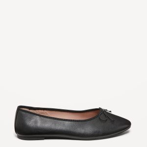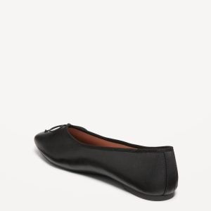 Faux-Leather Ballet Flats: almond-shaped toe, bow-tie accent, firm foot bed, textured outsole, #663674