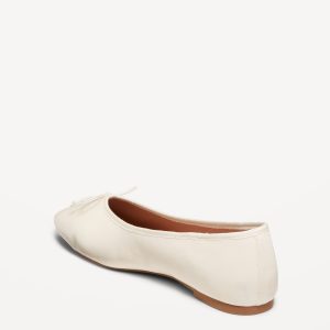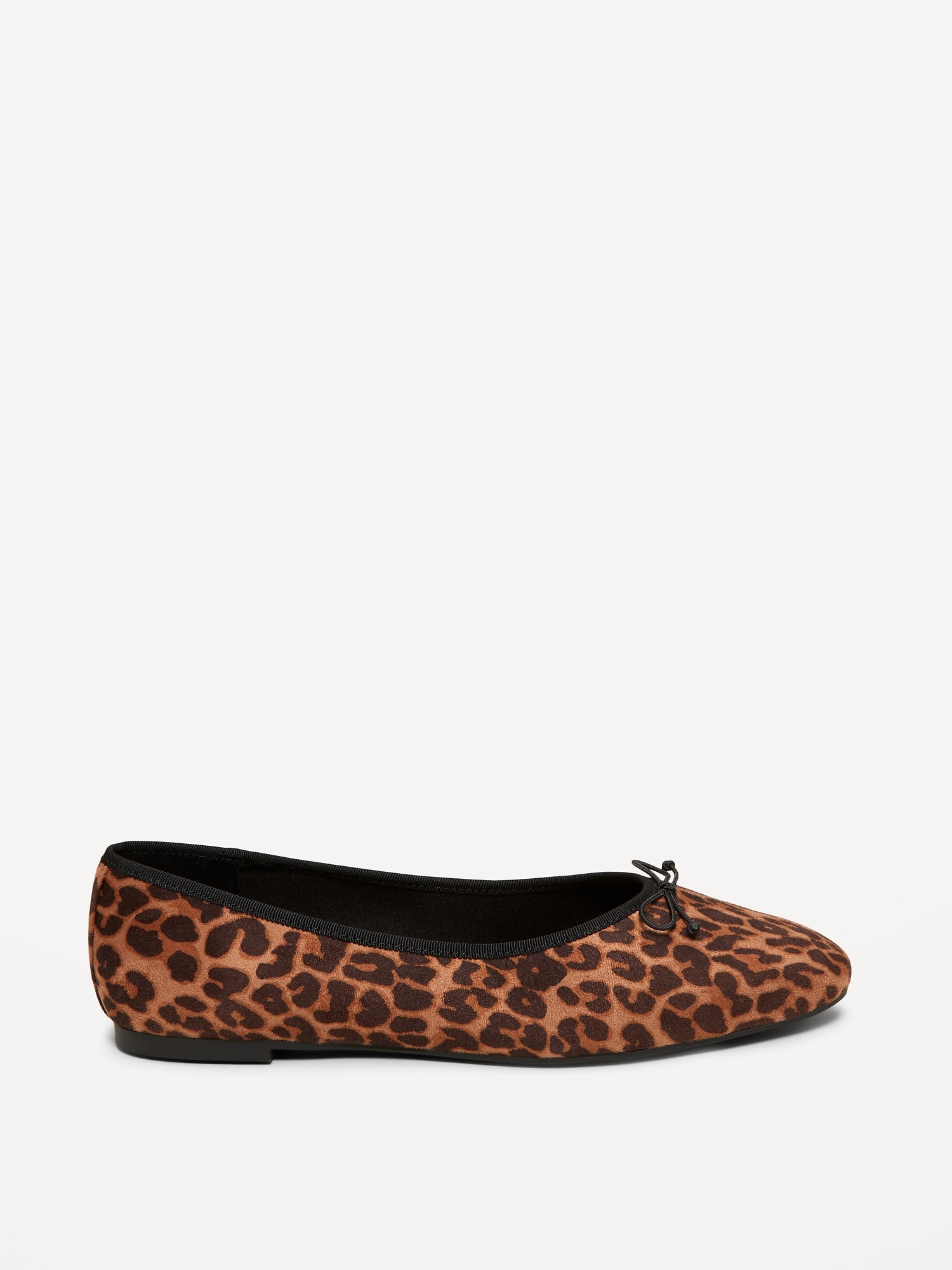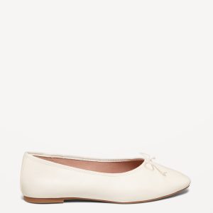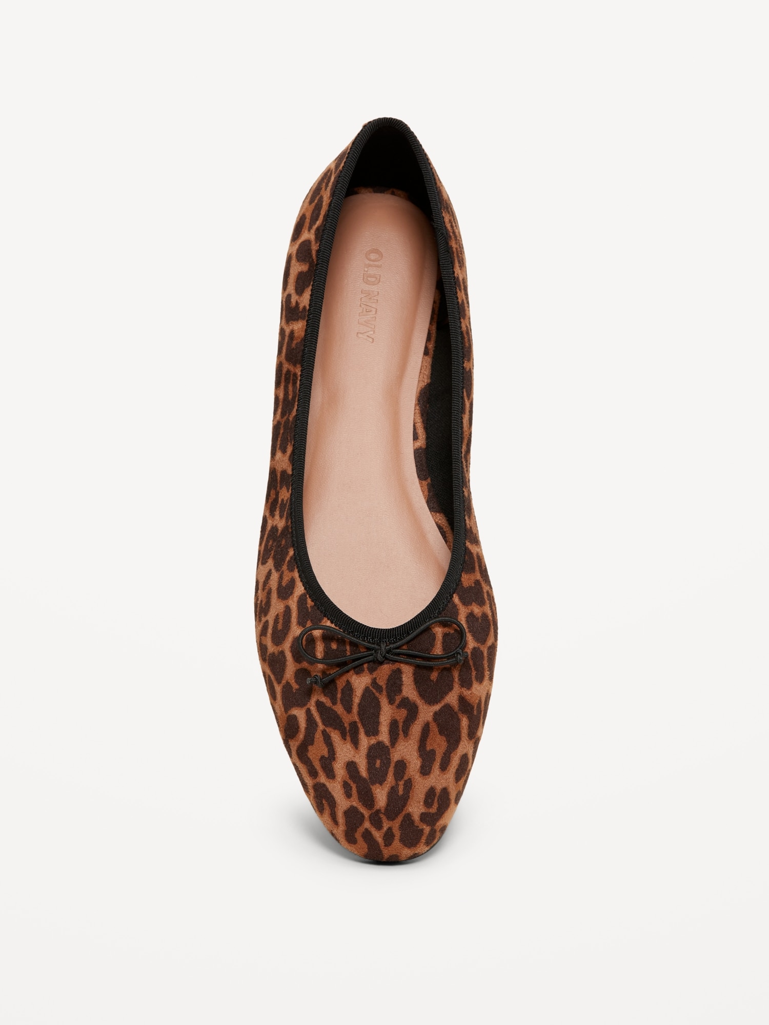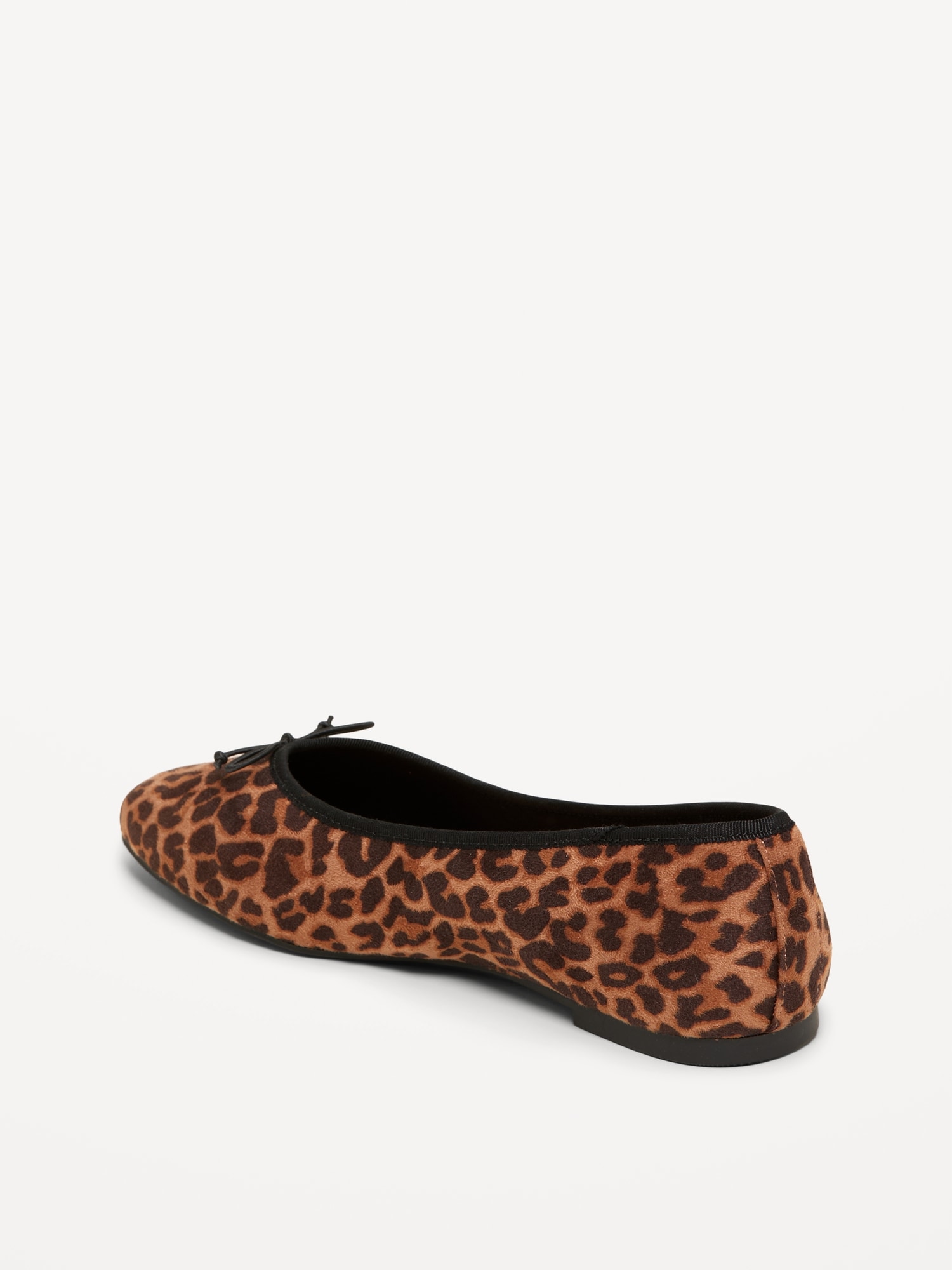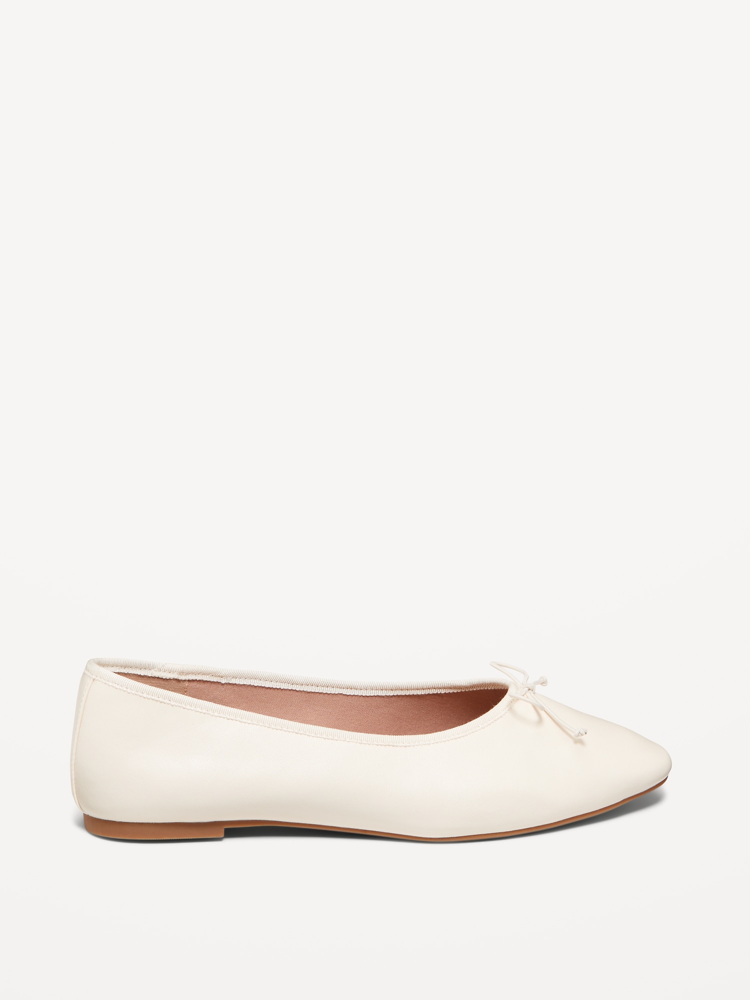 Faux-Leather Ballet Flats: almond-shaped toe, bow-tie accent, firm foot bed, textured outsole, #663674