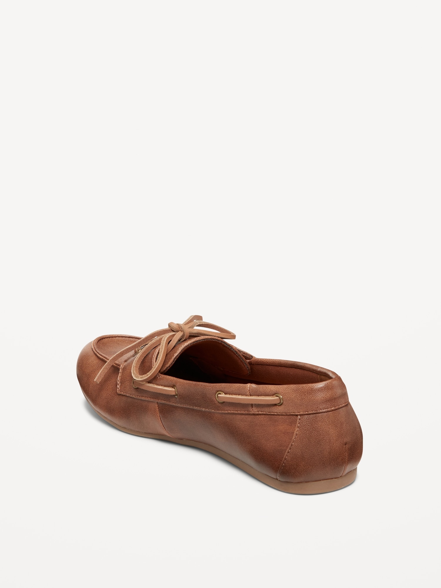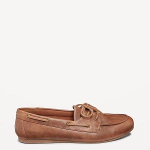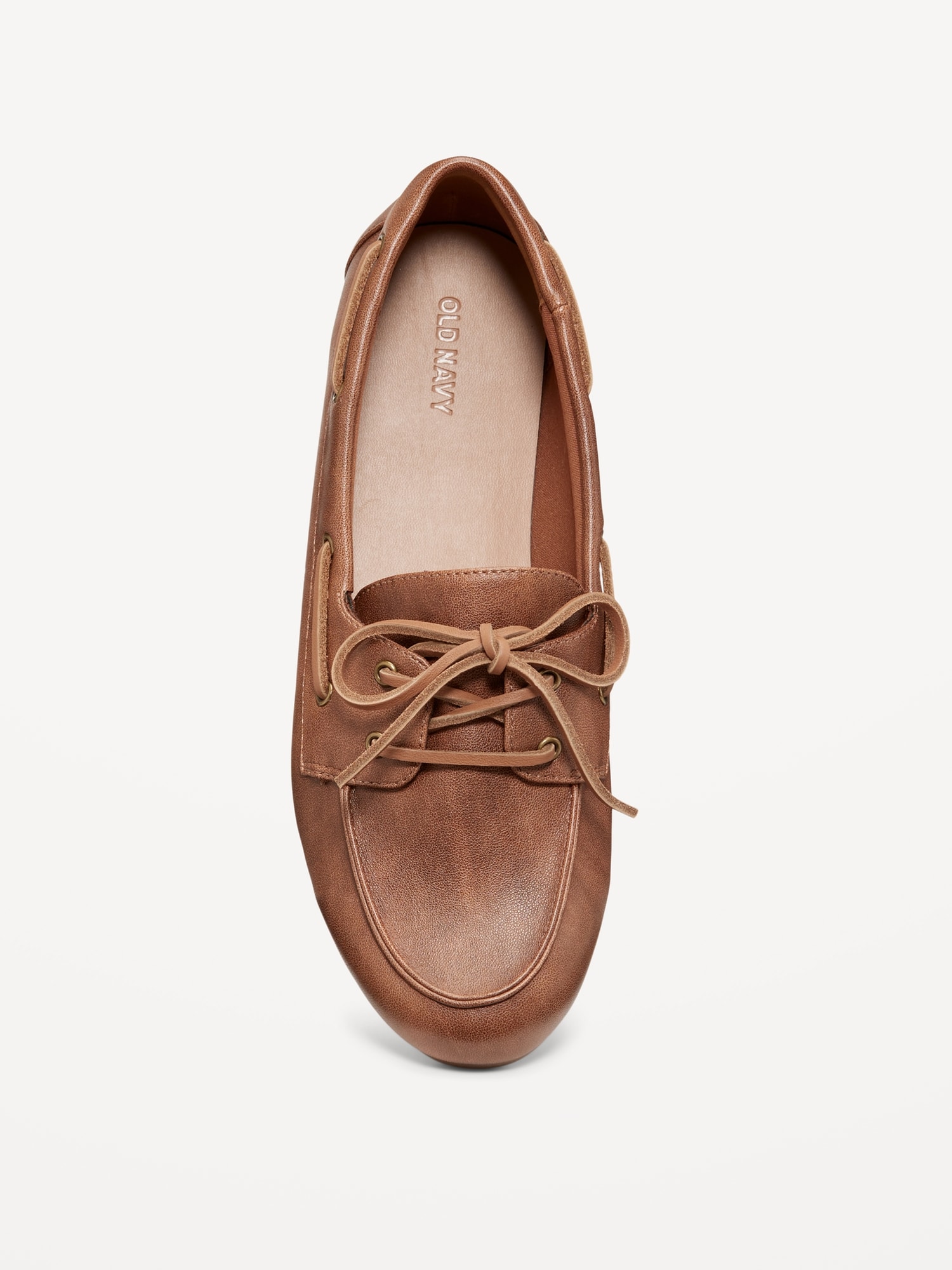 Faux-Leather Boat Shoes for Women: faux leather upper, lace-up detail, cushioned foot bed, slip-on style, #750797