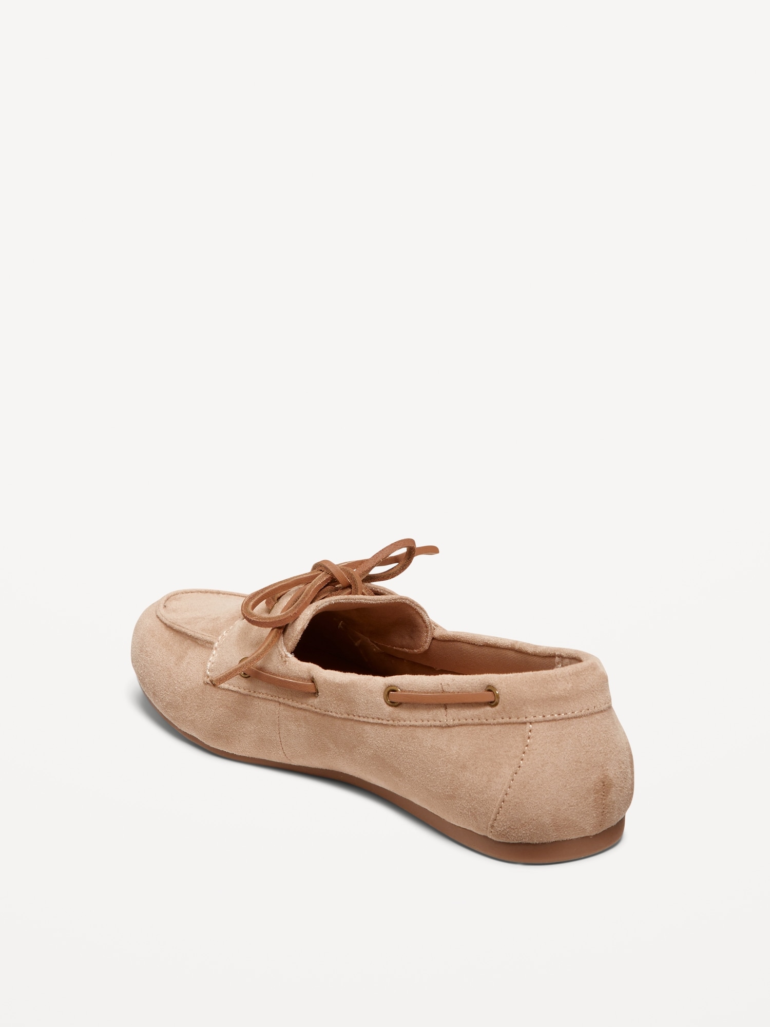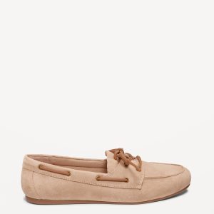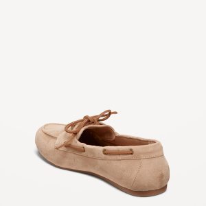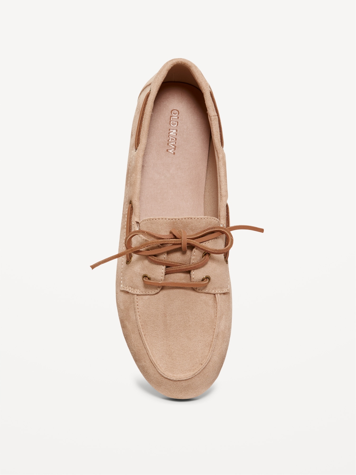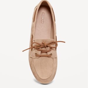 Faux-Leather Boat Shoes for Women: faux leather upper, lace-up detail, cushioned foot bed, slip-on style, #750797