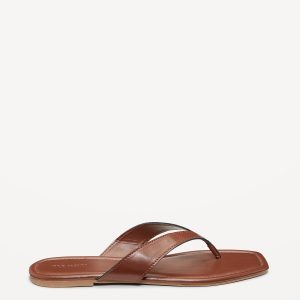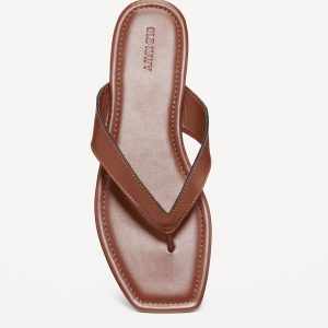 Faux-Leather Flip Flop for Women: faux leather upper, square toe, firm foot bed, slide-on style, #766739