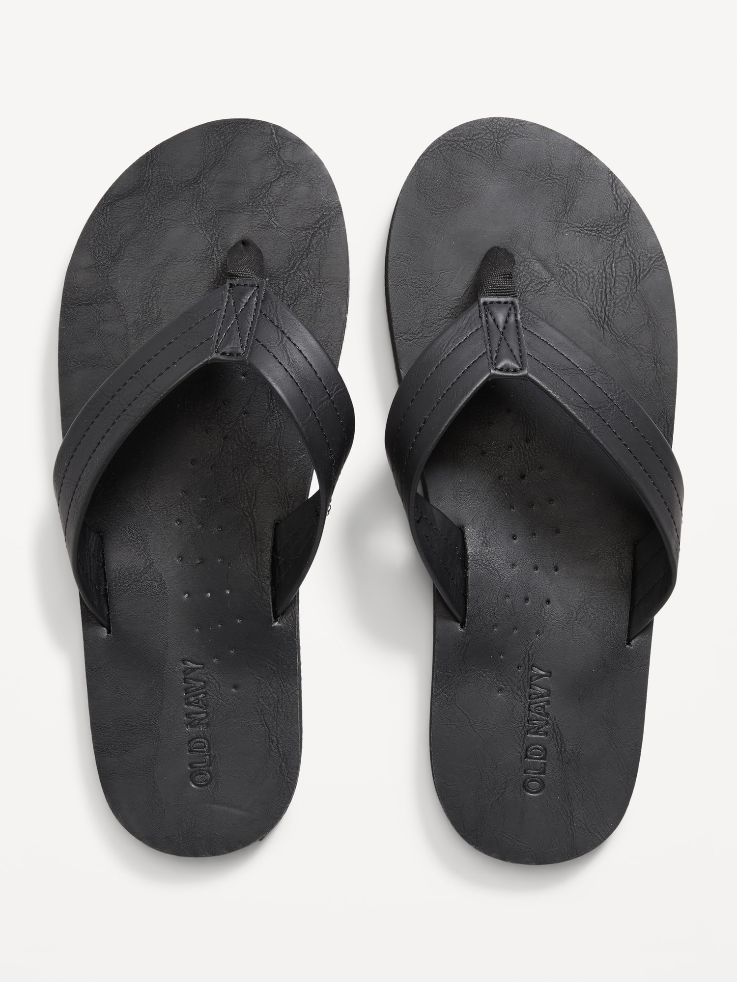 Faux-Leather Flip-Flop Sandals for Men: sueded faux-leather upper, thong strap, cushioned foot bed, textured synthetic outsole, #696091