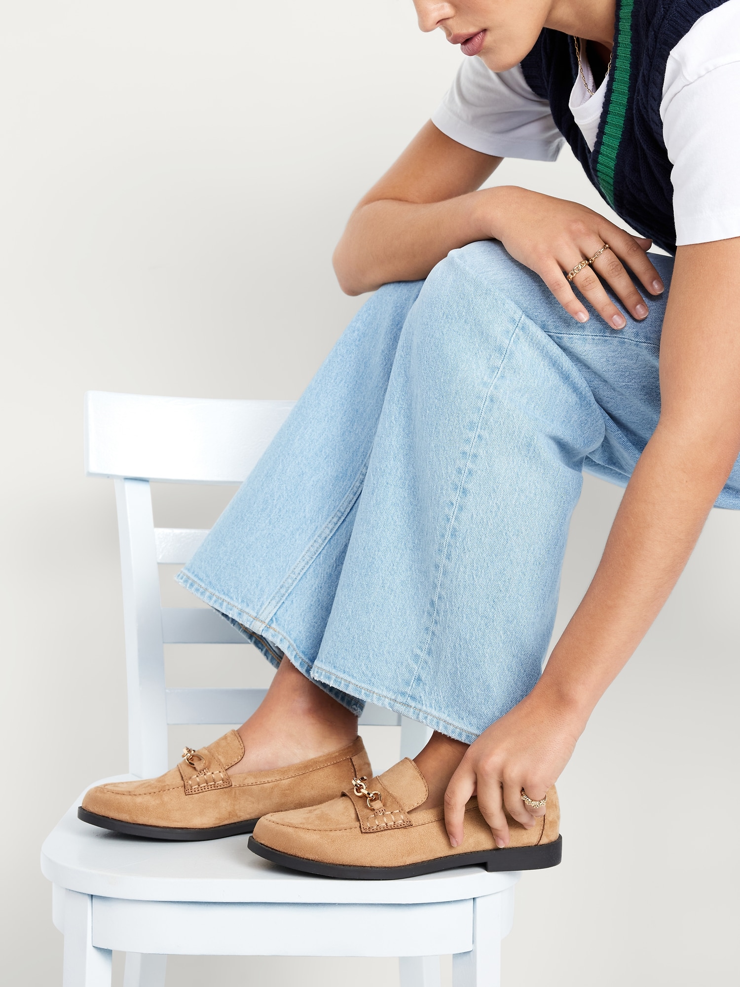 Faux-Leather Loafer: faux leather upper, strap at vamp, cushioned foot bed, #766703