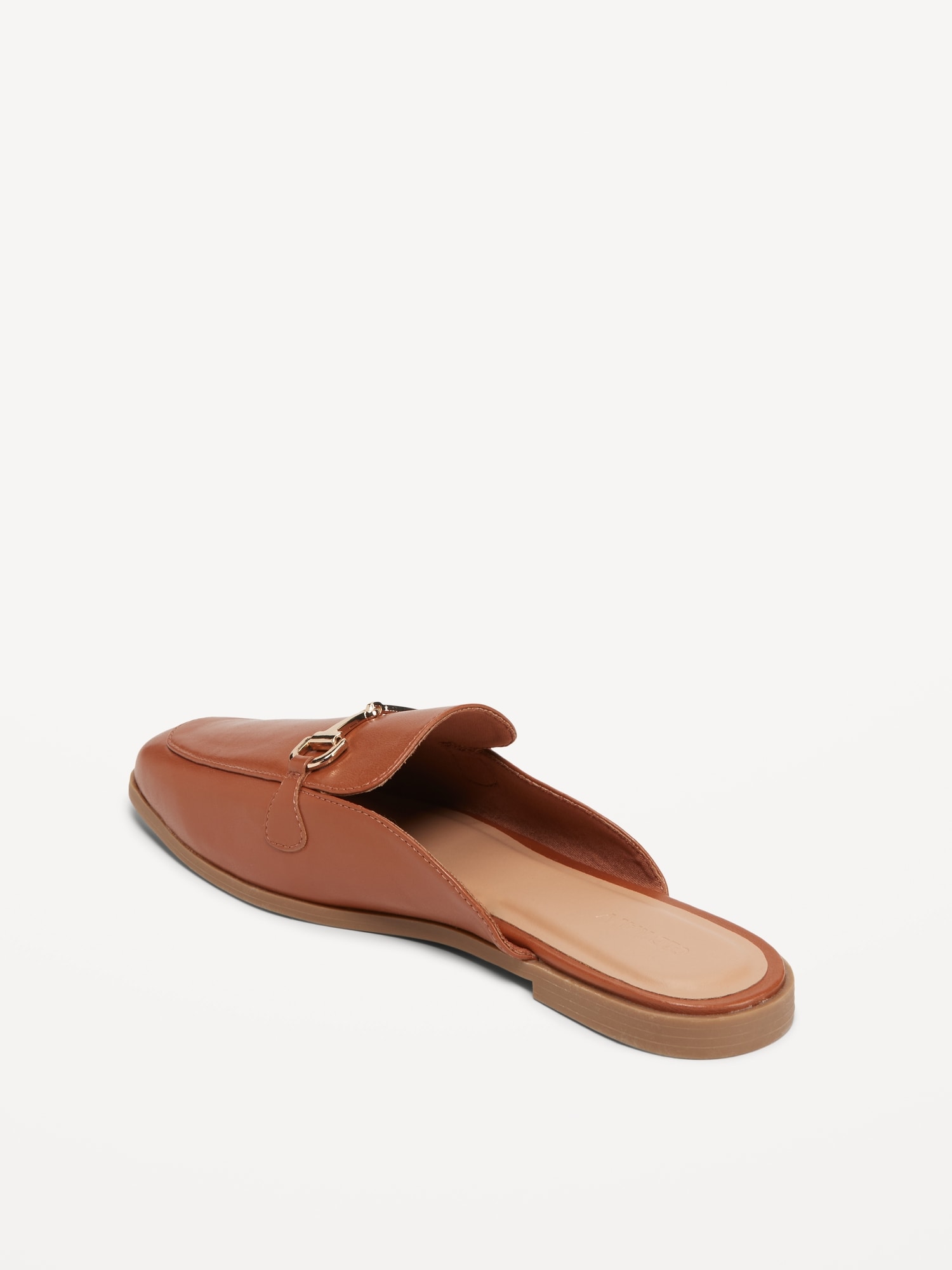 Faux-Leather Loafer Mule Shoes: Faux-leather upper, with buckle front detail, open mule heel, and pointed, square toe., Cushioned faux-leather foot bed., Textured thermoplastic rubber outsole., These shoes are made with a 51% recycled thermoplastic rubber outsole. Less waste in the world ??, #745325