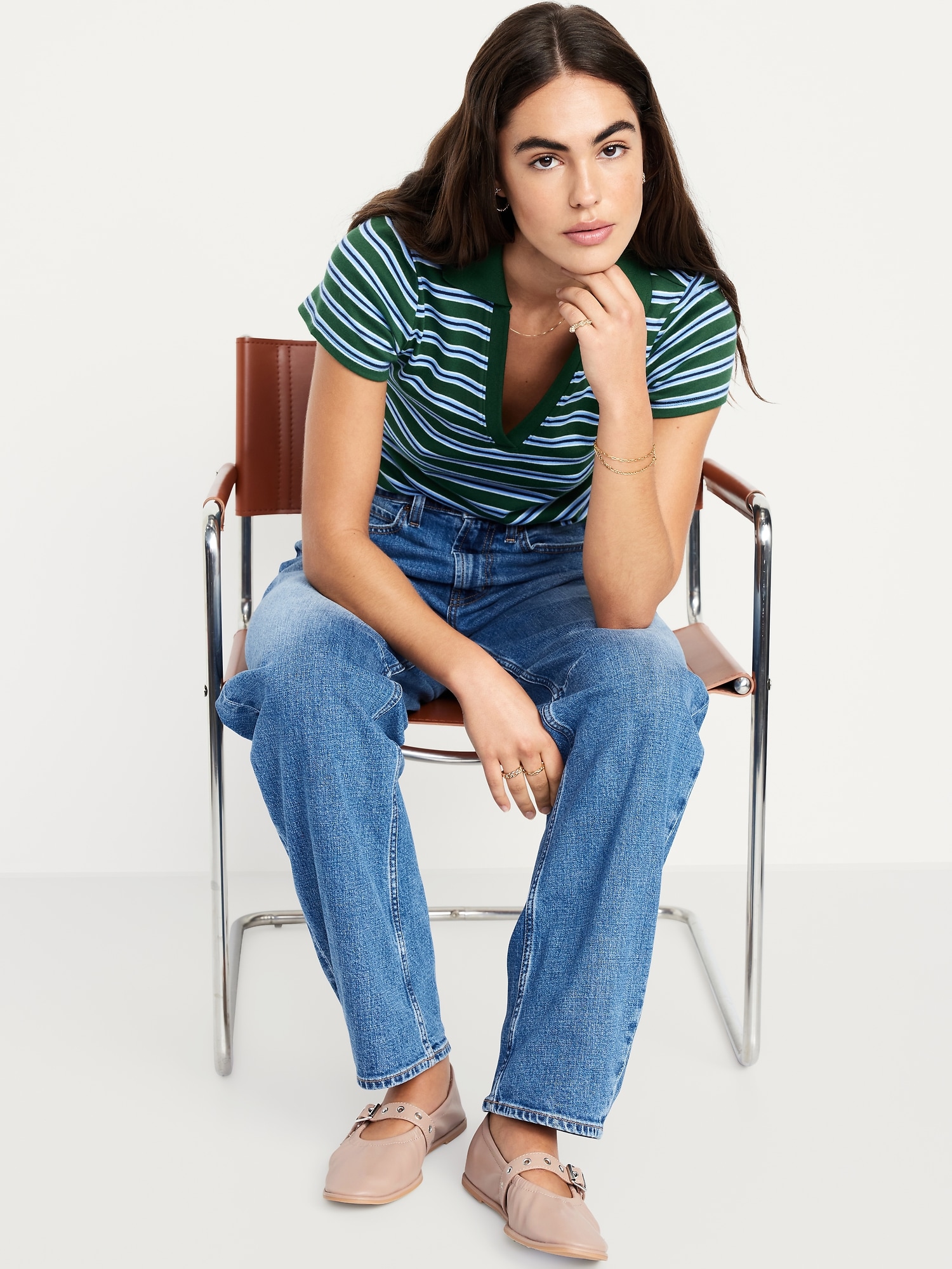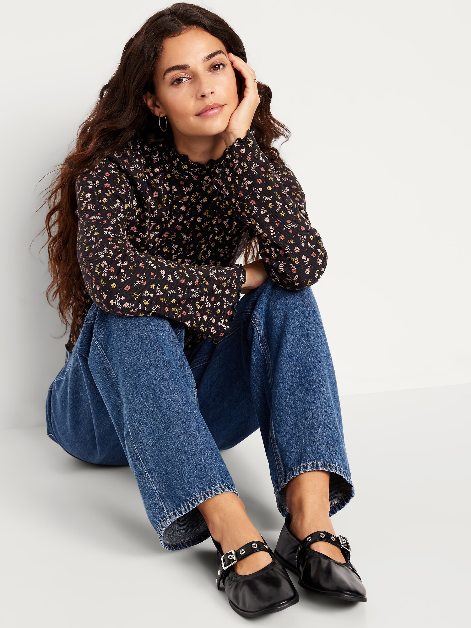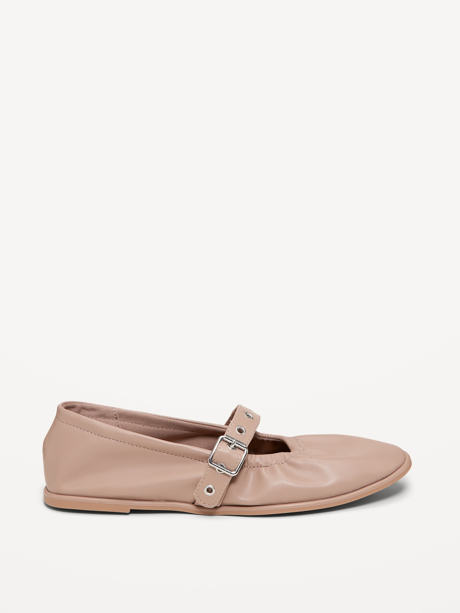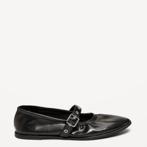 Faux-Leather Mary-Jane Scrunch Ballet Flats
