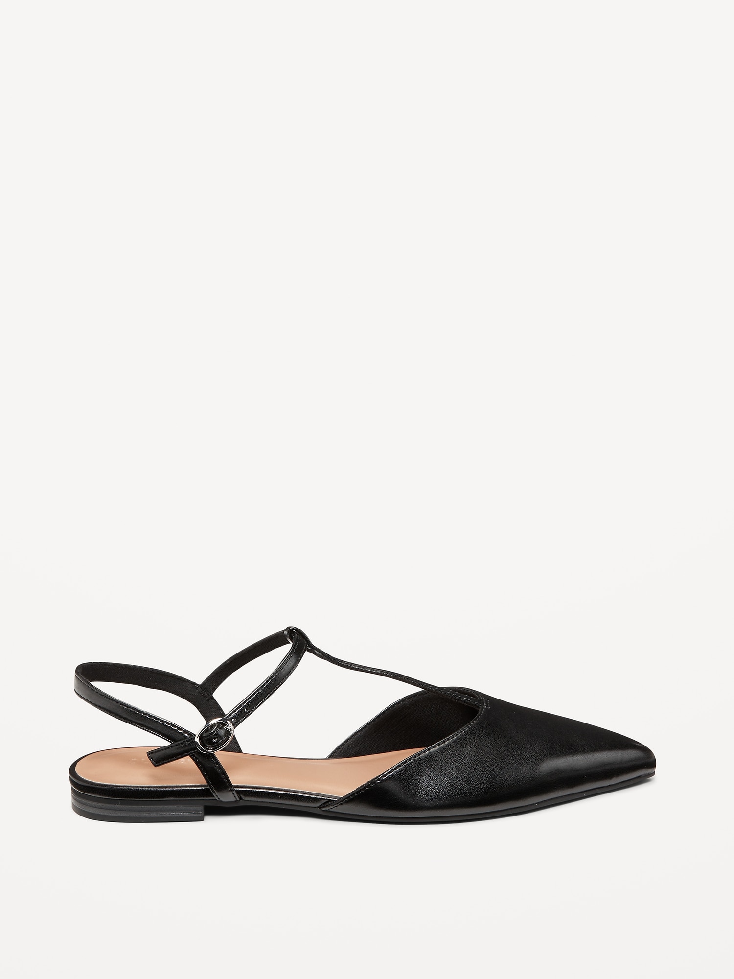 Faux-Leather Mary Jane T-Strap Flats for Women