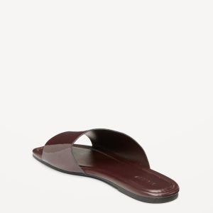 Faux-Leather Slide Sandals for Women: faux leather upper, square toe, cushioned foot bed, slide-on style, #766743