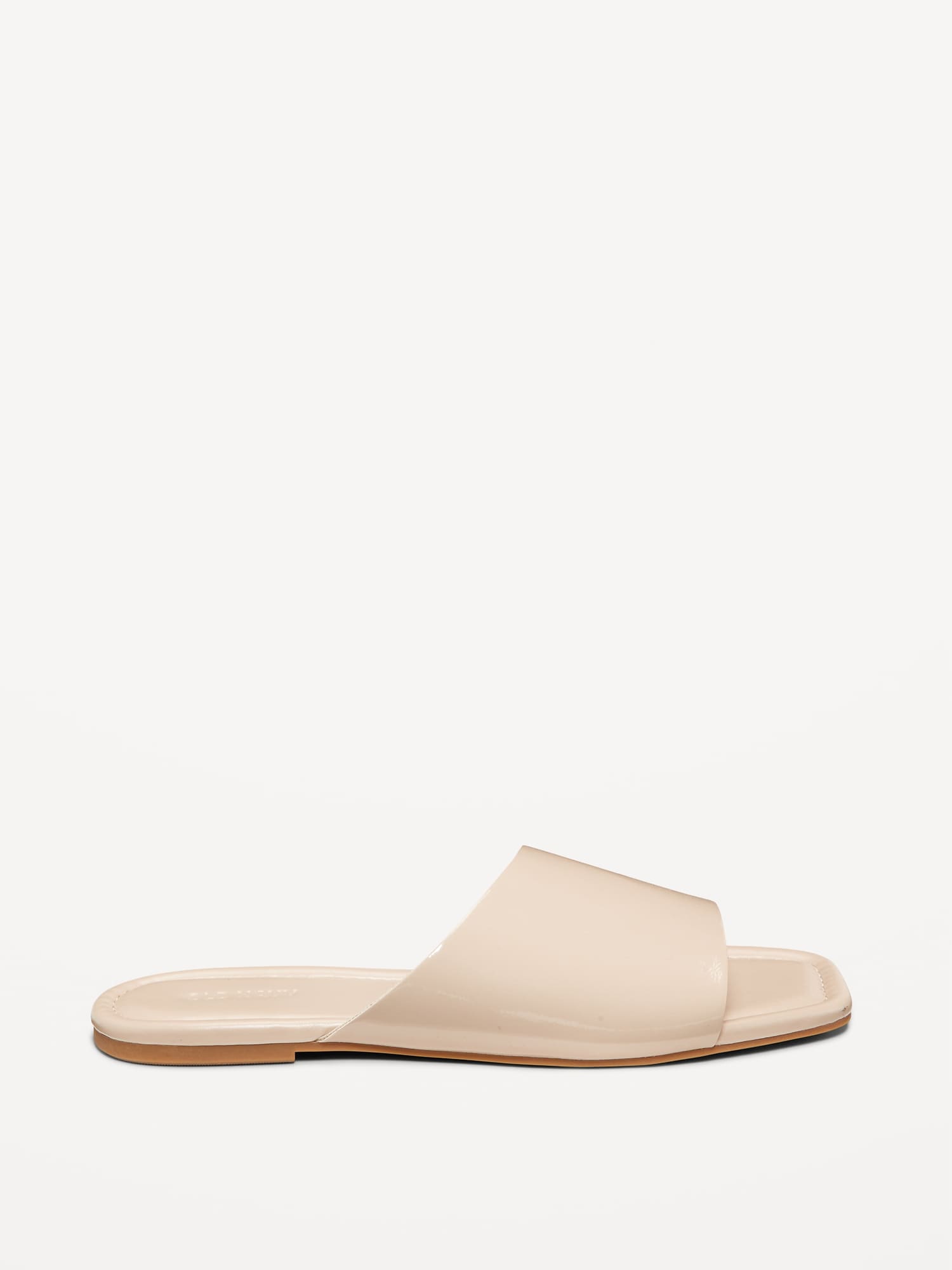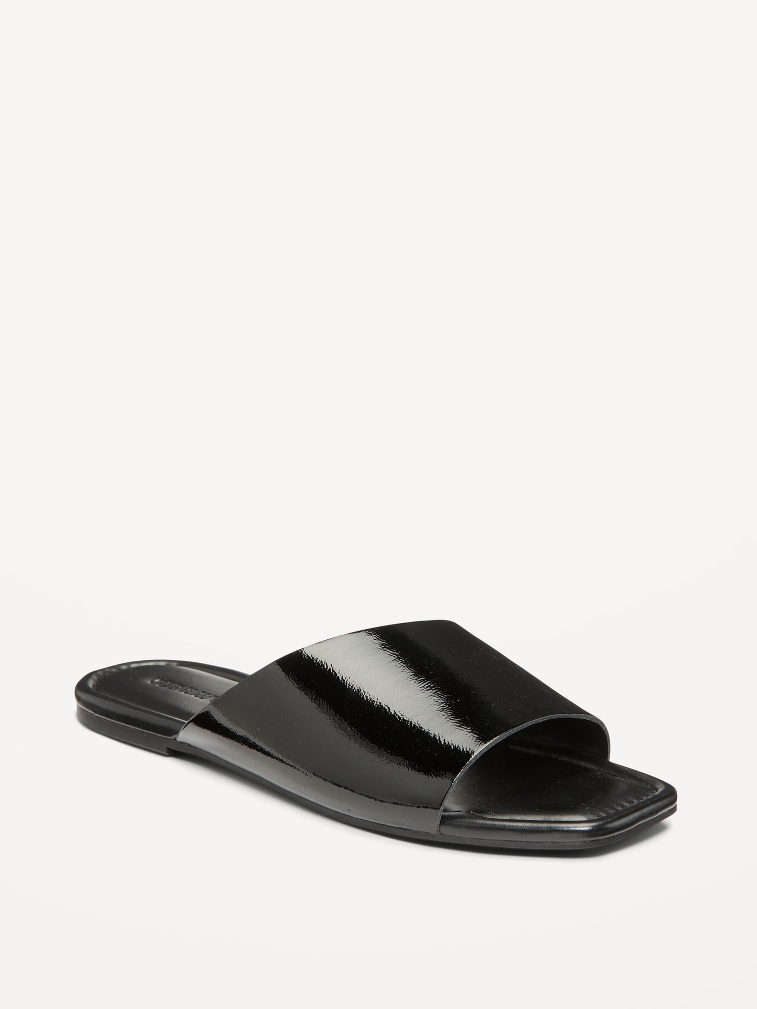 Faux-Leather Slide Sandals for Women: faux leather upper, square toe, cushioned foot bed, slide-on style, #766743