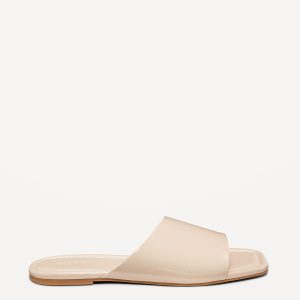 Faux-Leather Slide Sandals for Women: faux leather upper, square toe, cushioned foot bed, slide-on style, #766743