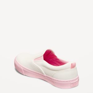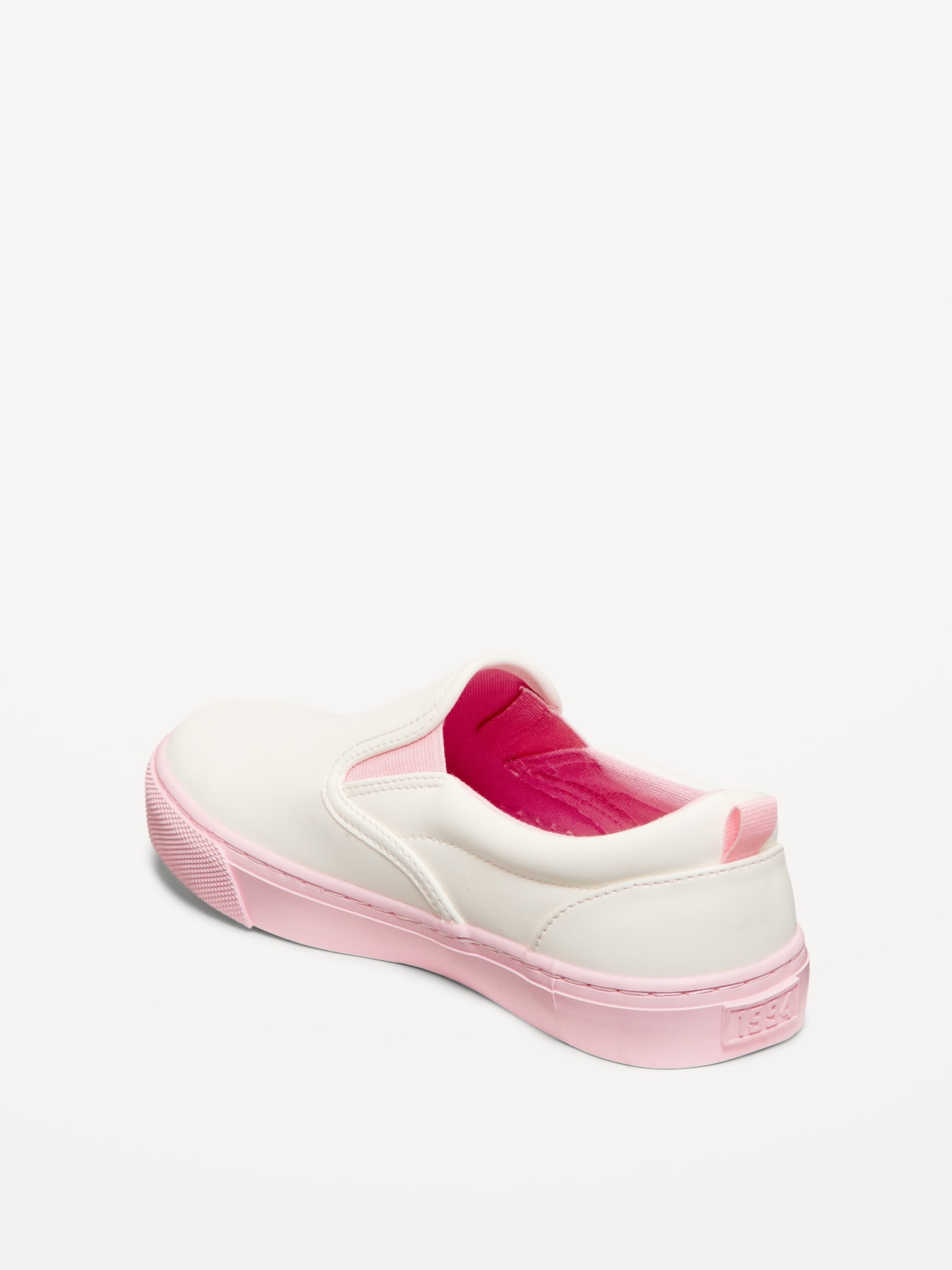 Faux-Leather Slip-On Sneakers for Girls: webbed goring at sides, round toe, cushioned foot bed, rubber midsole, vulcanized outsole, pull tab at heel, #762461