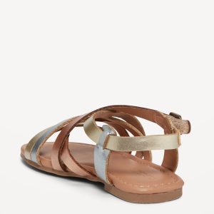 Faux-Leather Strappy Sandals for Toddler Girls: buckled ankle strap, straps across foot, cushioned foot bed, #689153