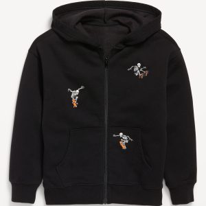 Favorite Fleece Oversized Zip Hoodie for Boys: built-in hood, long sleeves, drop shoulders, full length zipper, hand-warming scoop pockets, banded hem, all-over pattern or graphic, #761765