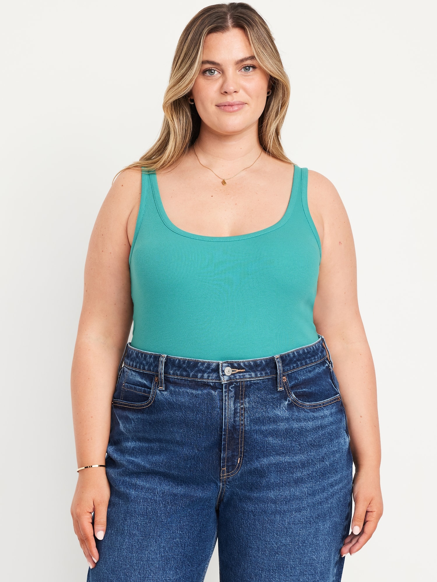First-Layer Ribbed Scoop-Neck Tank Top: scoop neck, wide straps, #619927