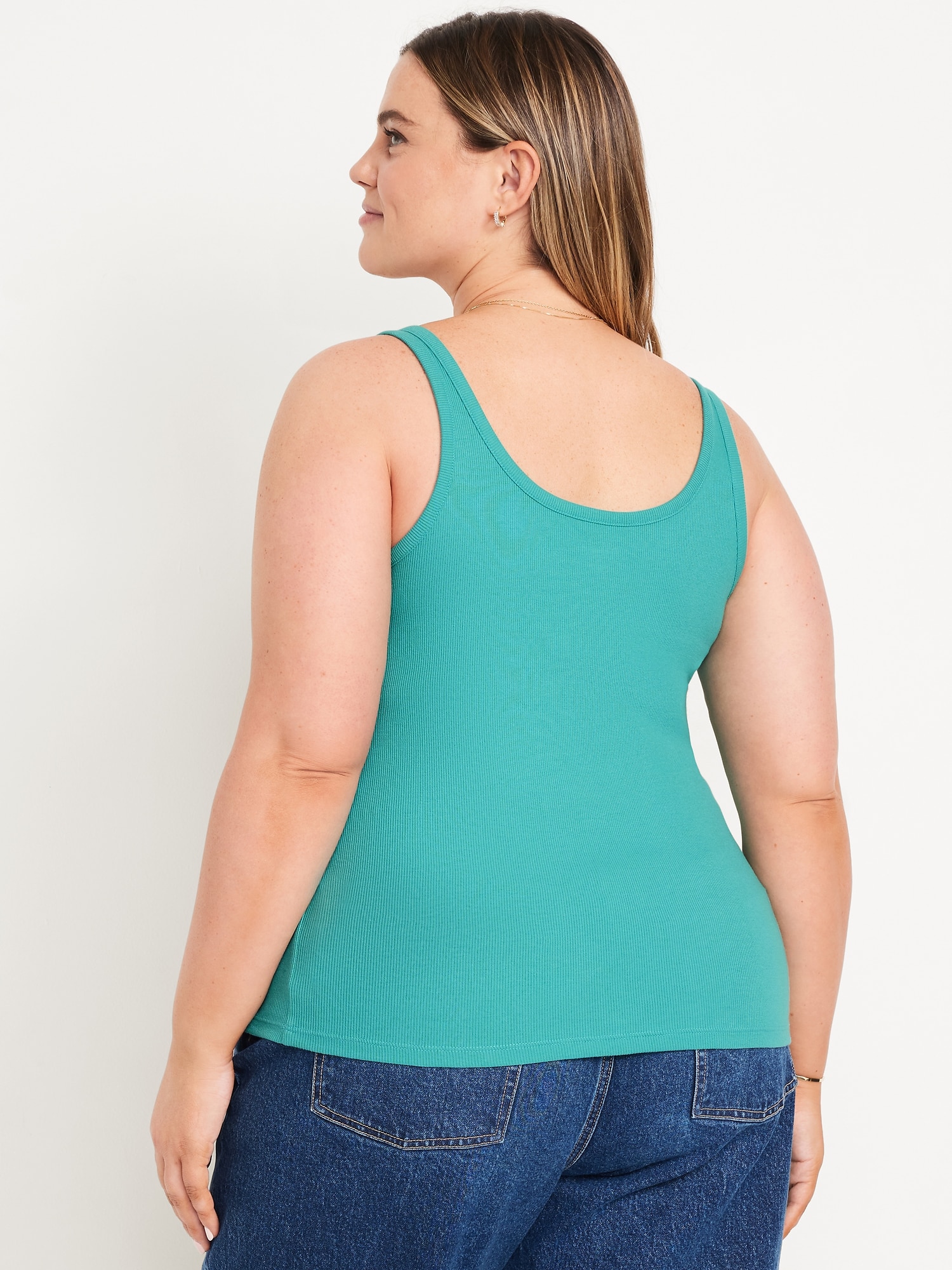 First-Layer Ribbed Scoop-Neck Tank Top