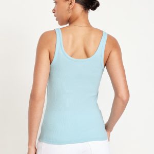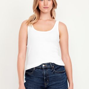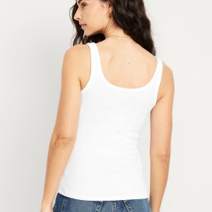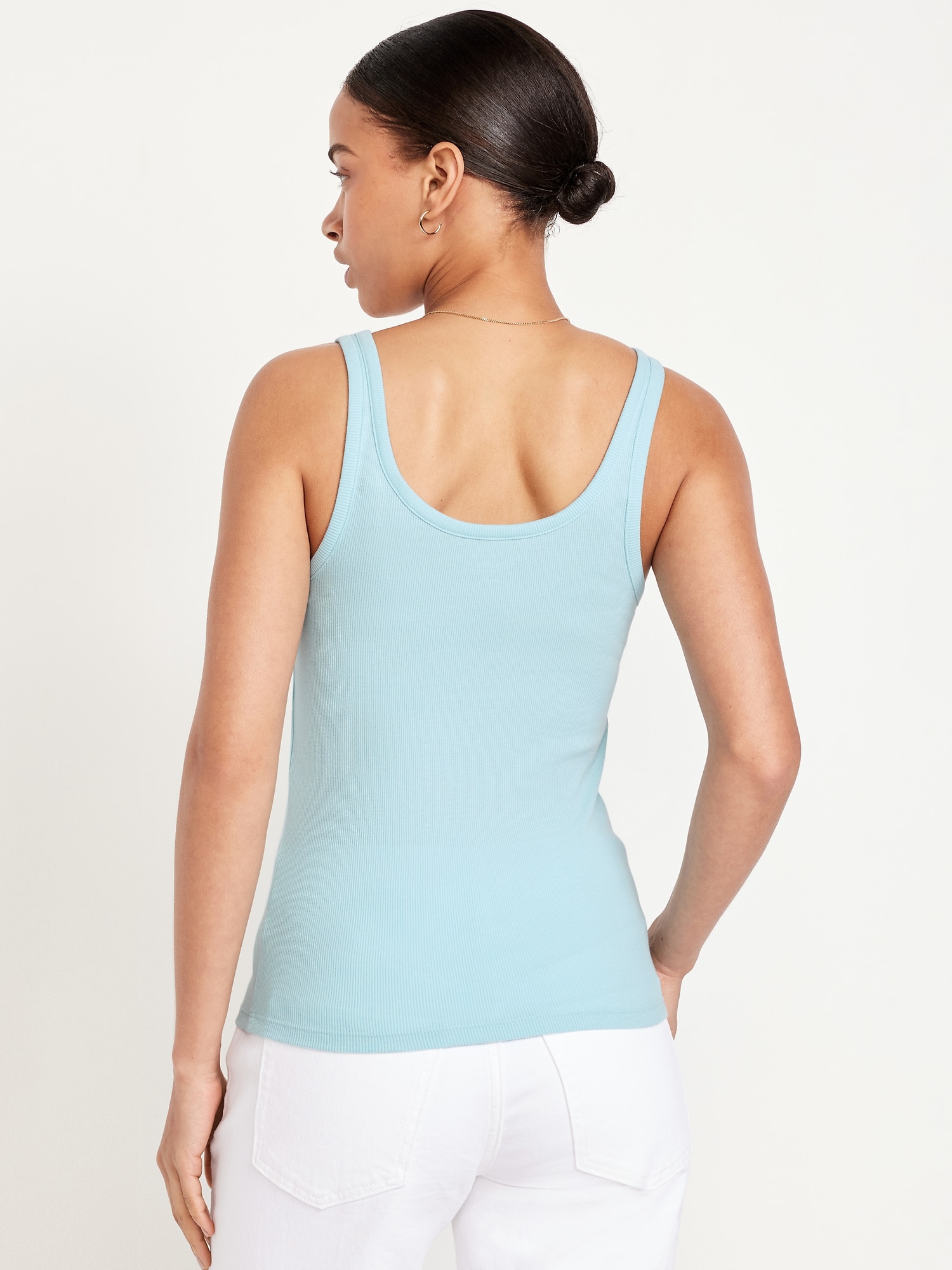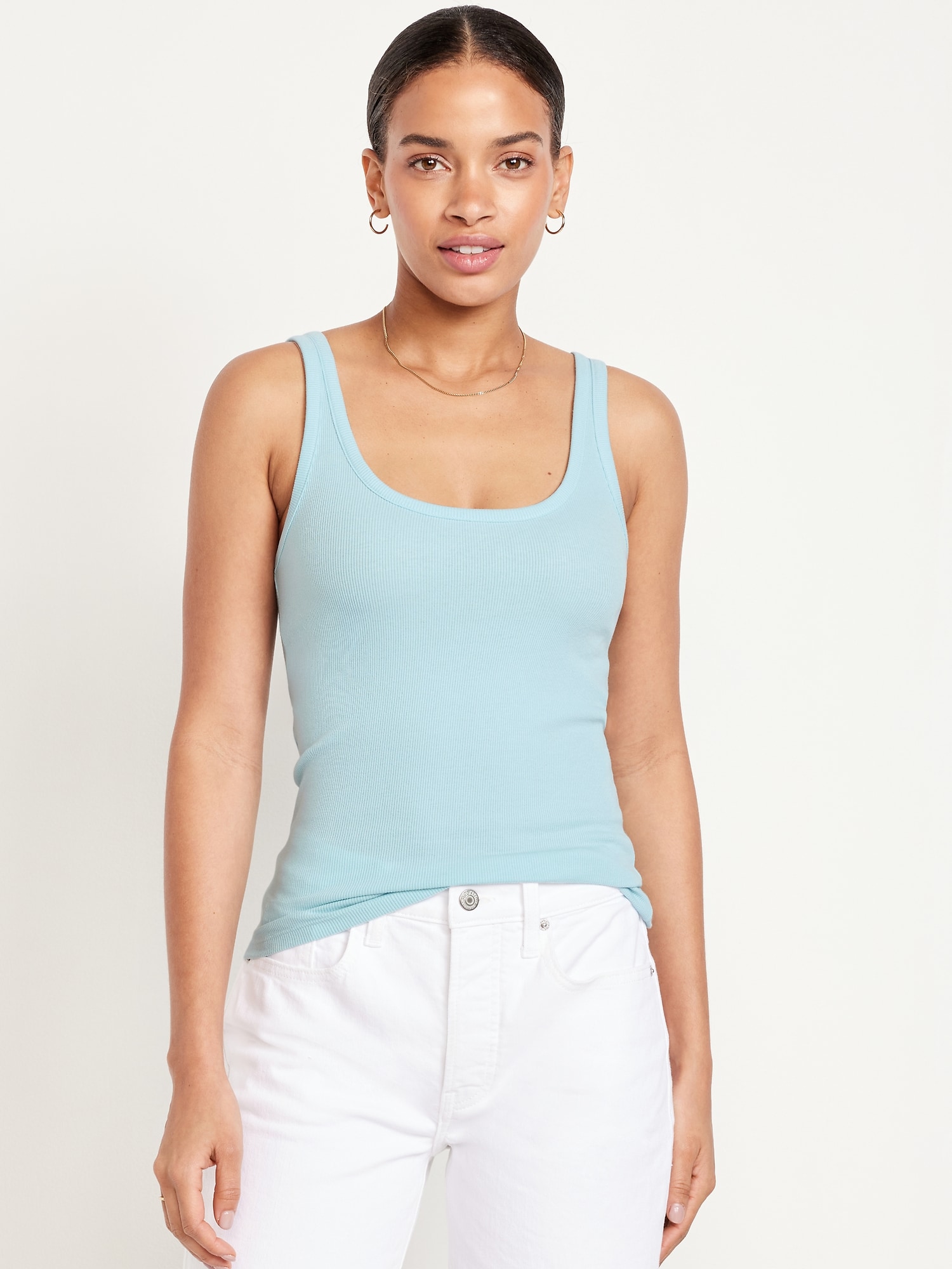 First-Layer Ribbed Scoop-Neck Tank Top: scoop neck, wide straps, #619927