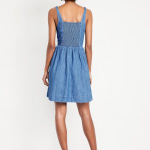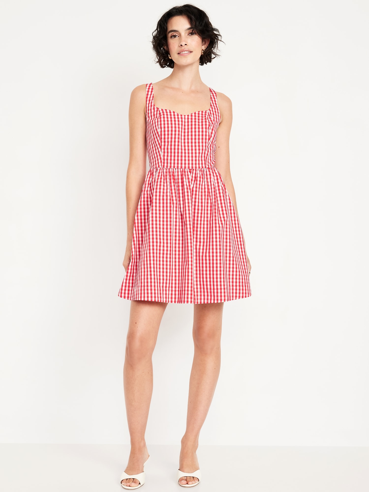 Fit & Flare Cami Mini Dress: sweetheart neckline, wide straps, smocked back, seamed waist, side-seam pockets, princess seams, mini length, #766921