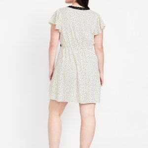 Fit & Flare Crepe Lace-Trim Mini Dress: lace-trim v-neck and bodice, short flutter sleeves, elasticized back waist, prints vary by color, #798245