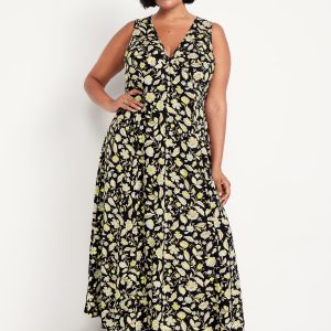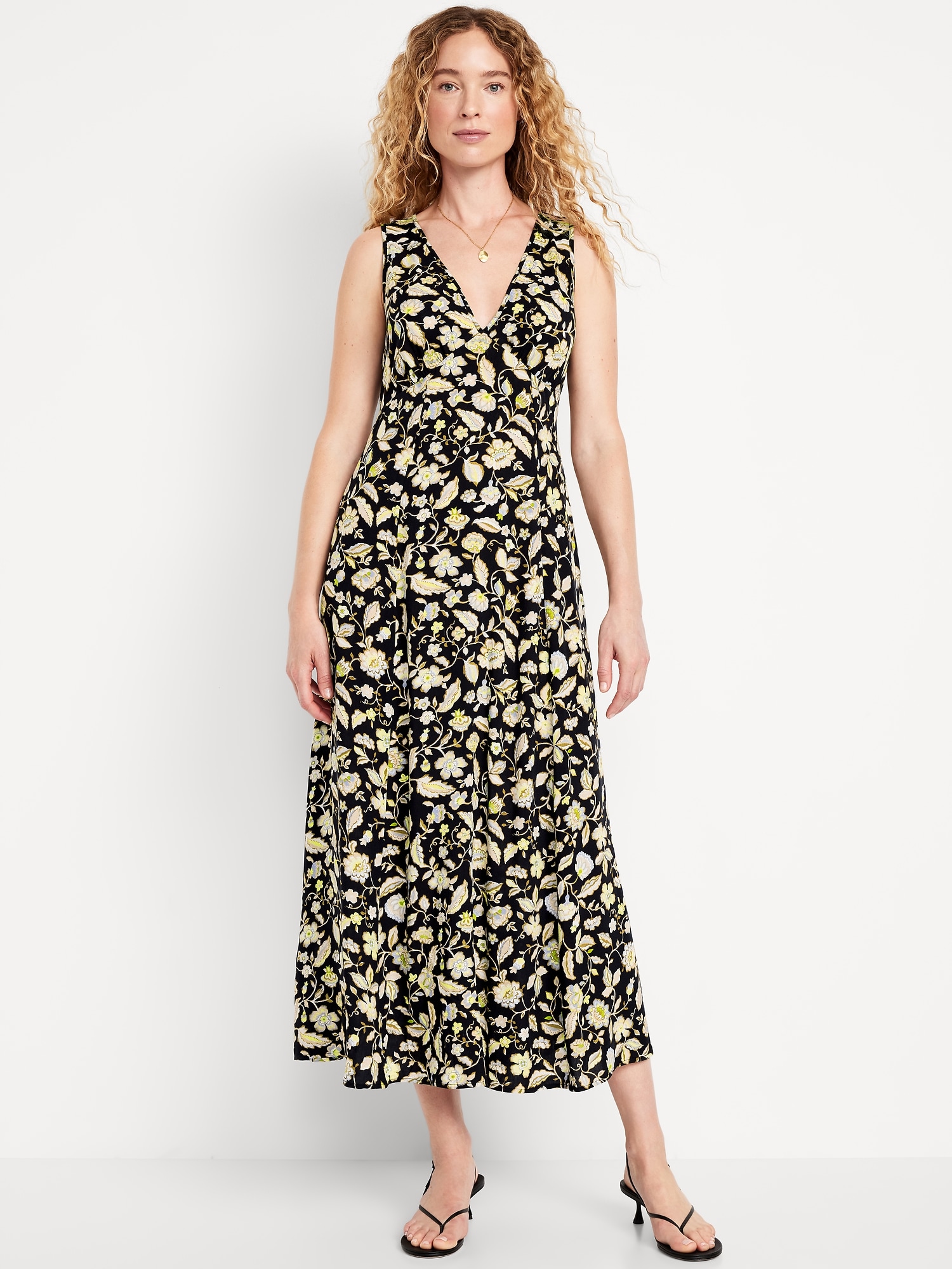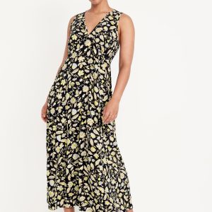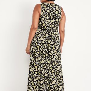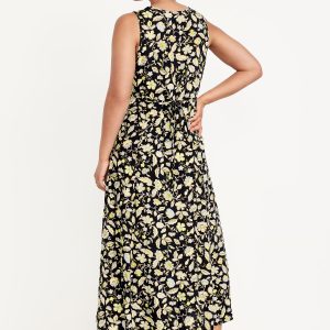 Fit & Flare Floral Maxi Dress: deep v-neck, sleeveless, tie-back waist, all-over floral print, #808837
