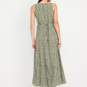Fit & Flare Floral Maxi Dress: deep v-neck, sleeveless, tie-back waist, all-over floral print, #808837