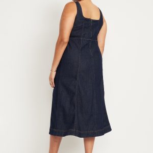 Fit & Flare Sleeveless Denim Midi Dress