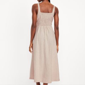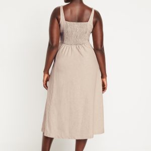 Fit & Flare Sleeveless Linen-Blend Midi Dress