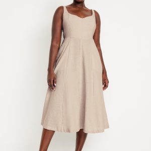 Fit & Flare Sleeveless Linen-Blend Midi Dress