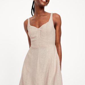 Fit & Flare Sleeveless Linen-Blend Midi Dress