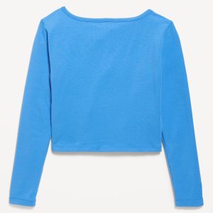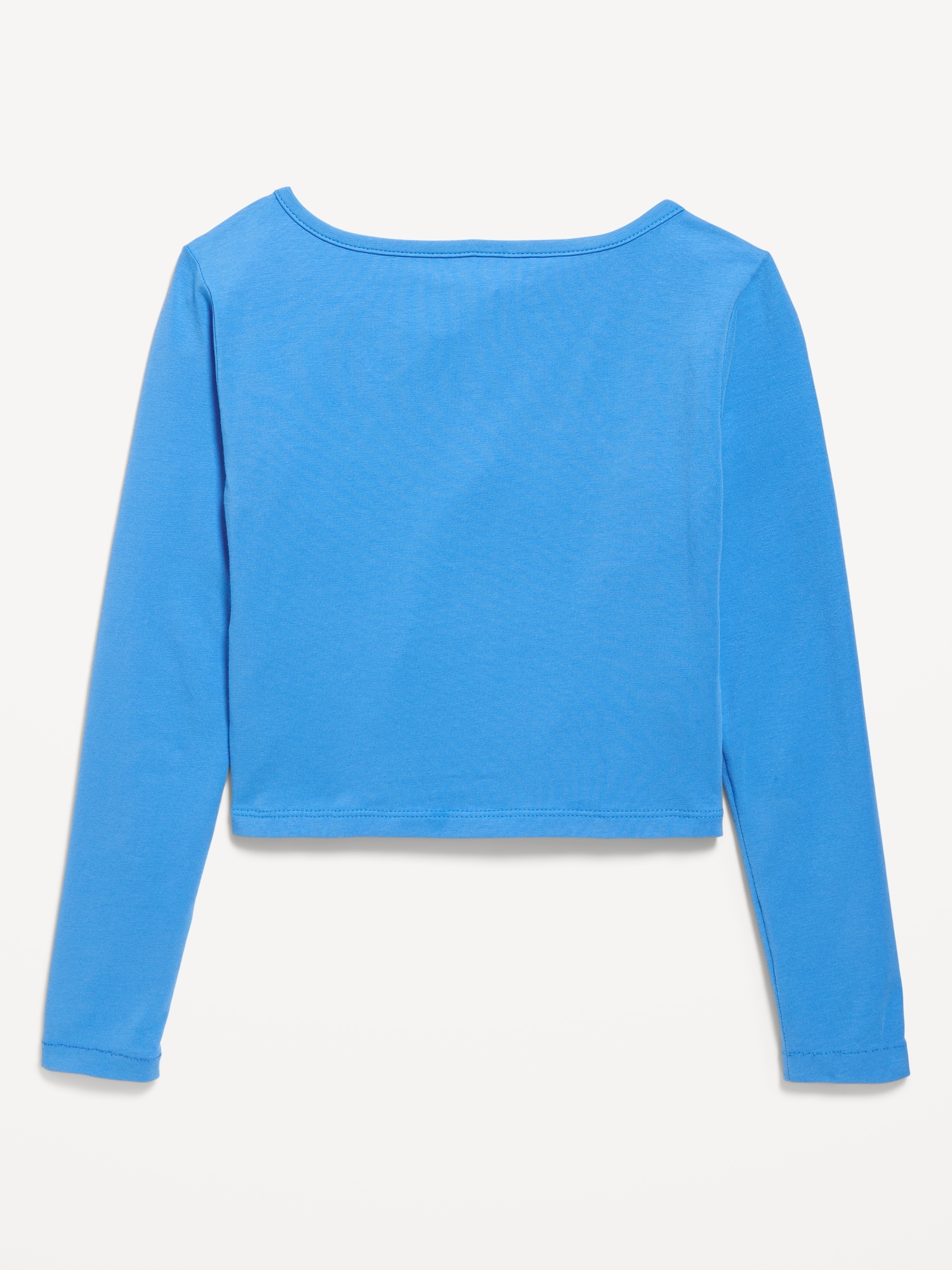 Fitted Long-Sleeve Ruched Top for Girls: v neck, long sleeves, ruching at center, online exclusive, #766950