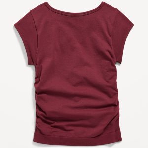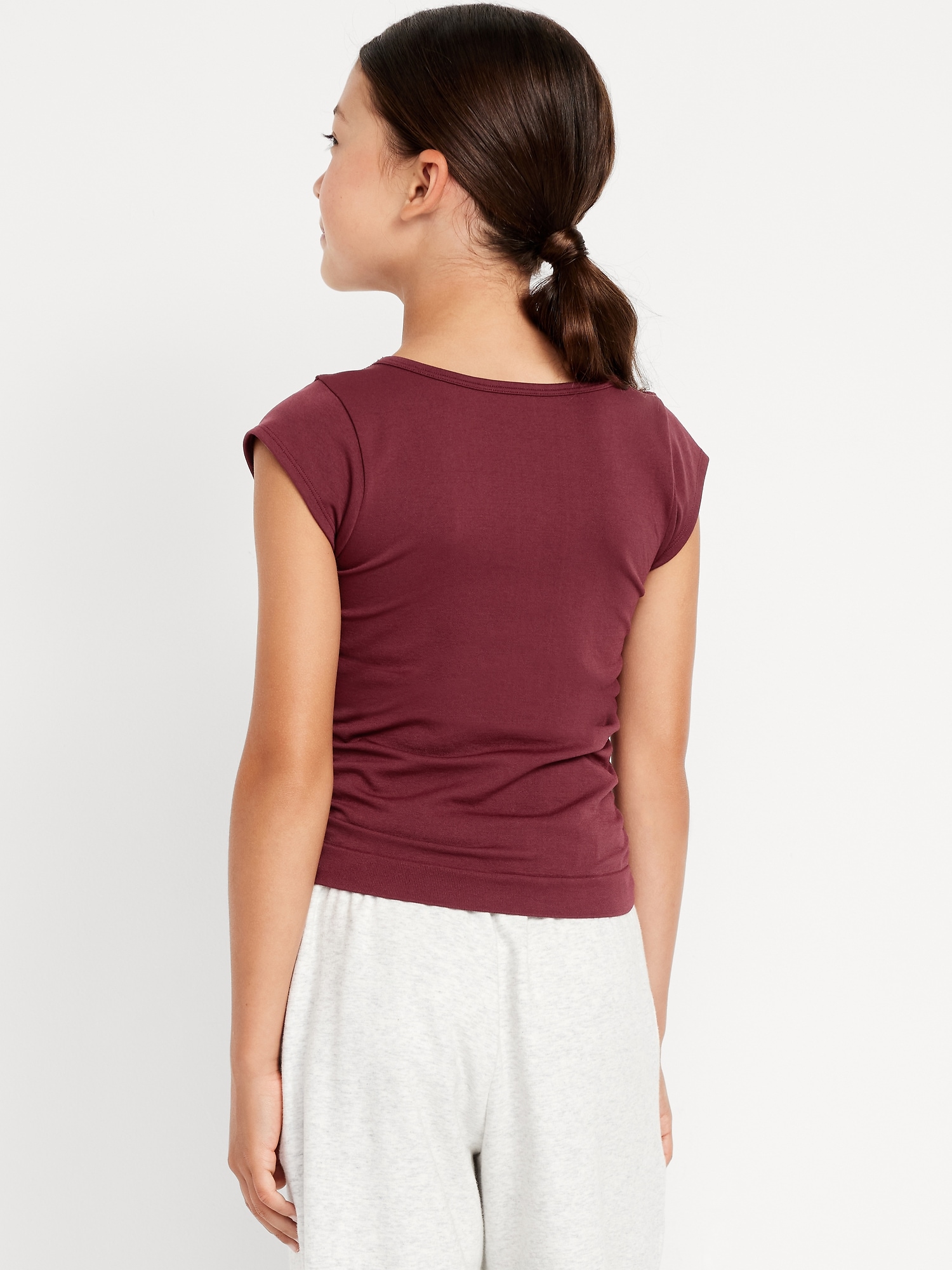 Fitted Ruched Seamless Performance Top for Girls: square neckline, short sleeves, ruching at sides, #763220