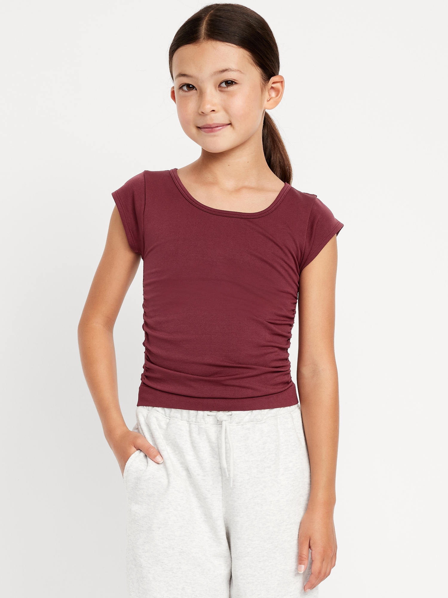 Fitted Ruched Seamless Performance Top for Girls: square neckline, short sleeves, ruching at sides, #763220