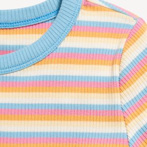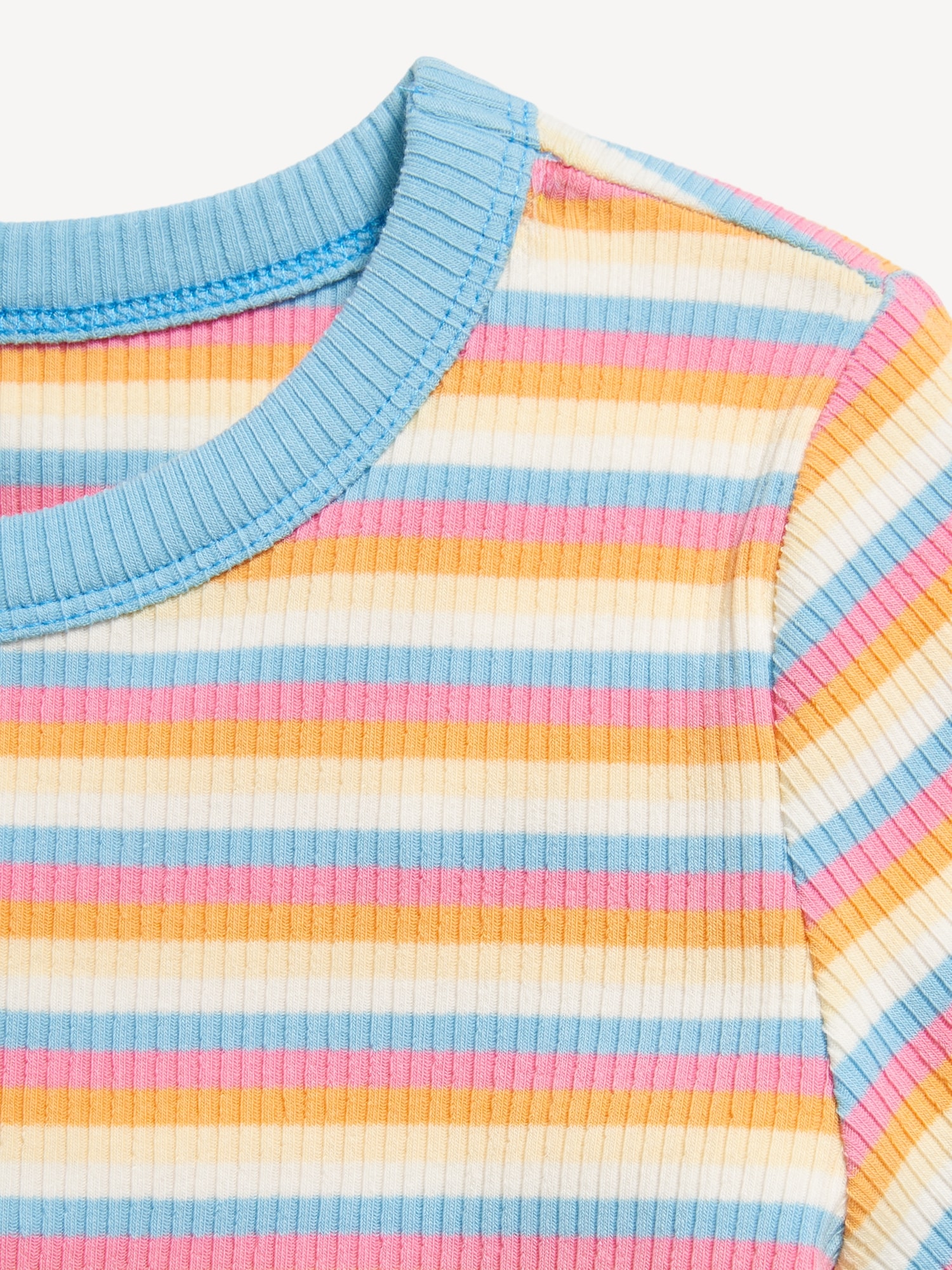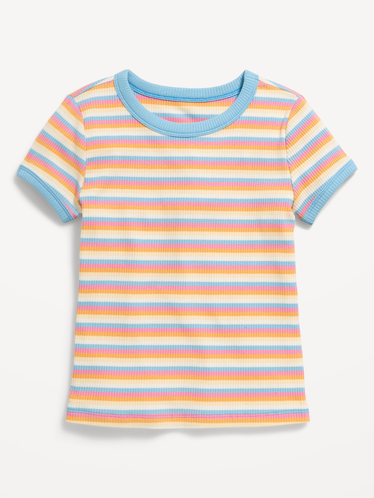 Fitted Short-Sleeve Printed Ribbed Ringer T-Shirt for Girls: crew neck, short sleeves, all-over print, #830947