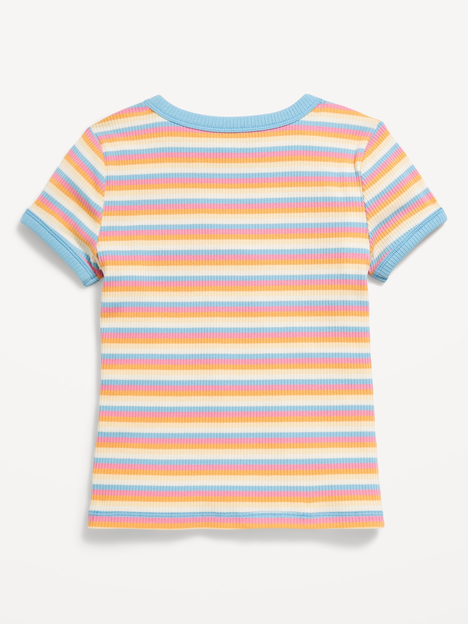 Fitted Short-Sleeve Printed Ribbed Ringer T-Shirt for Girls