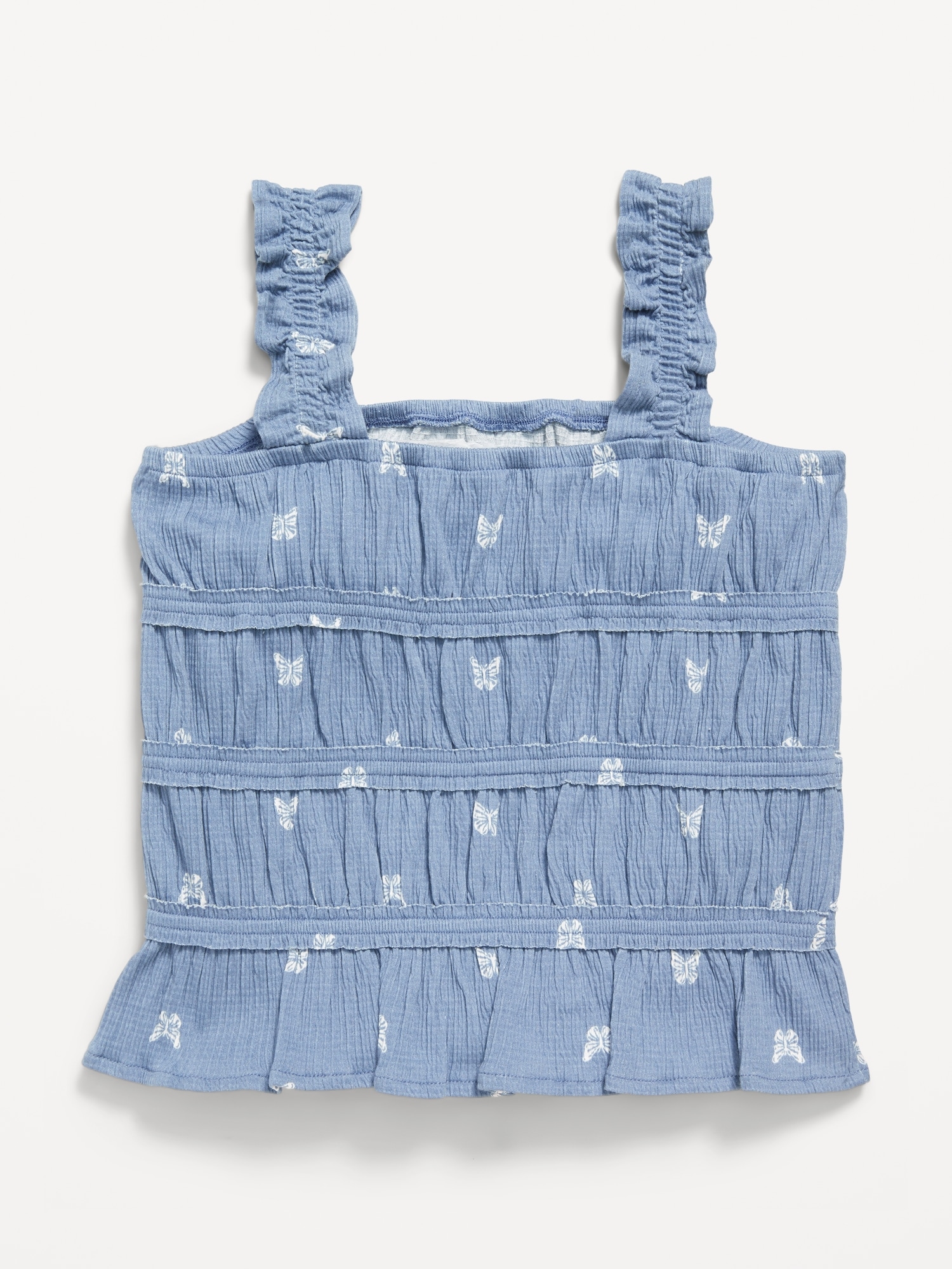Fitted Smocked Tank Top for Girls: square neckline, wide shoulder straps, smocked bodice, ruffled hem, #766945
