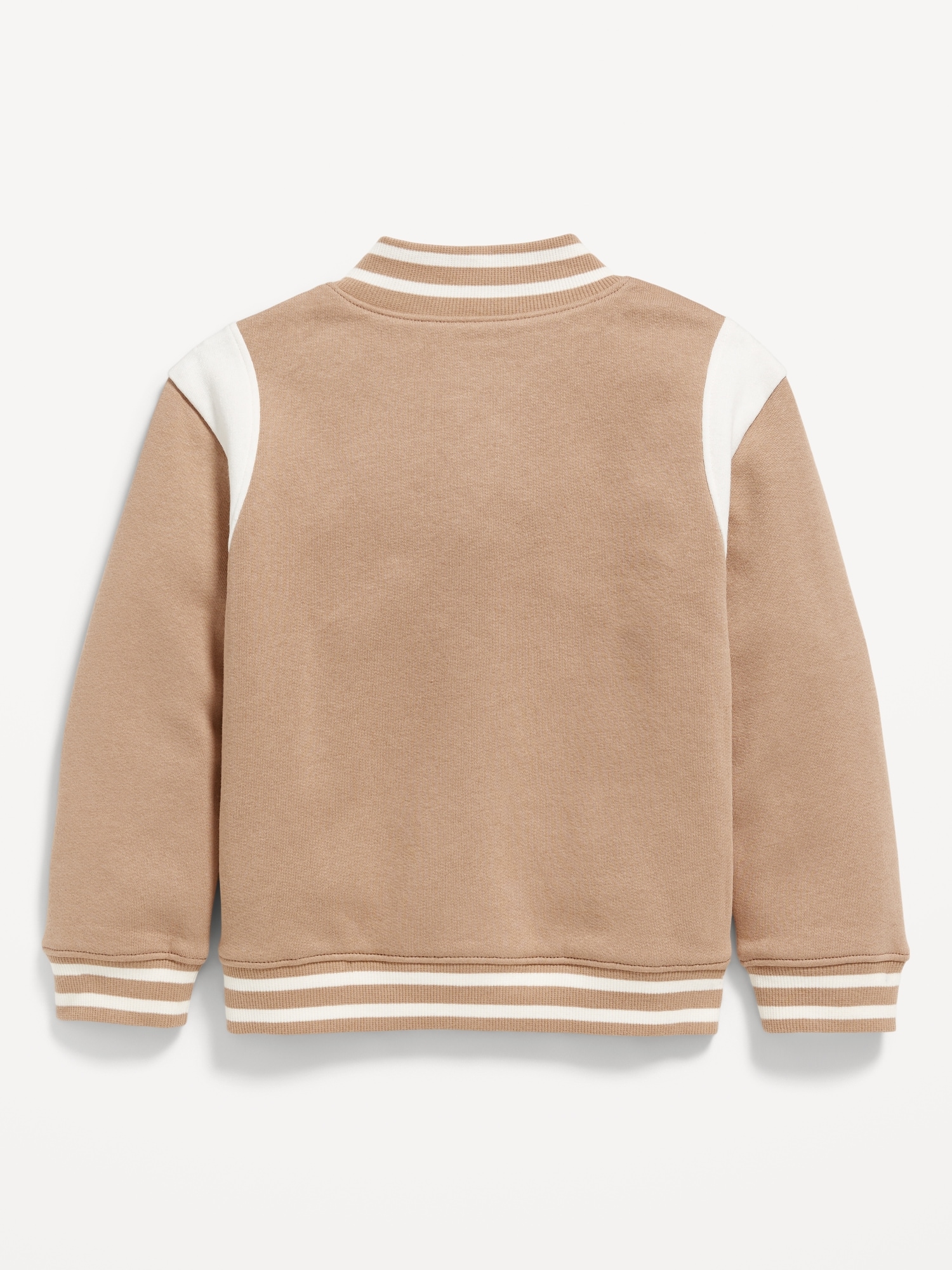Fleece Bomber Jacket for Toddler Boys: standing rib-knit collar, long sleeves, full-length snap-button placket, diagonal welt pockets at front, embroidered patch at chest (select colors), rib-knit hem, #787815